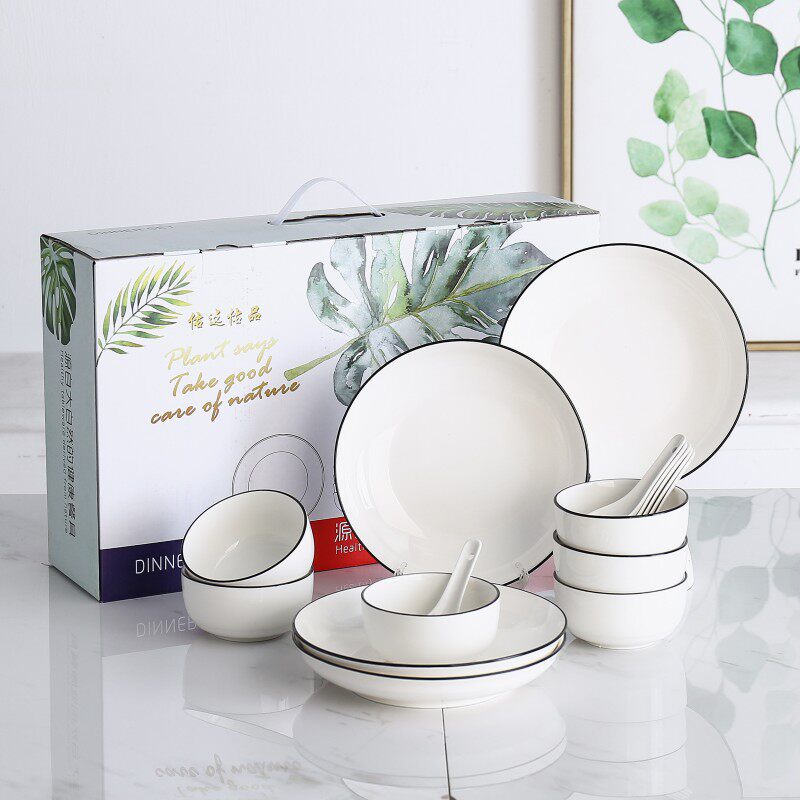 奖品公司年会餐具北欧风青花瓷碗LOGO活动礼品碗套装礼盒装定制批