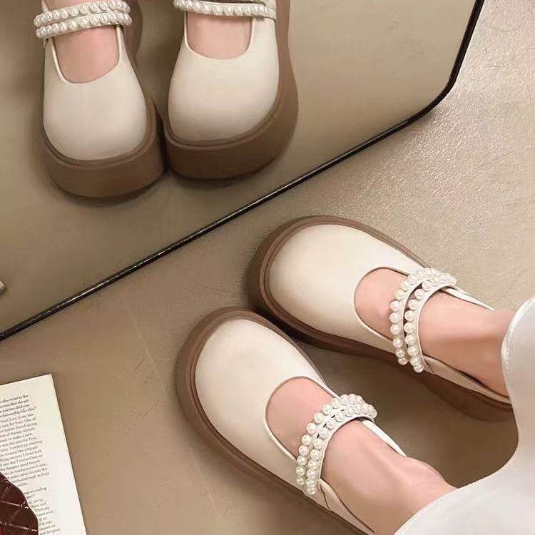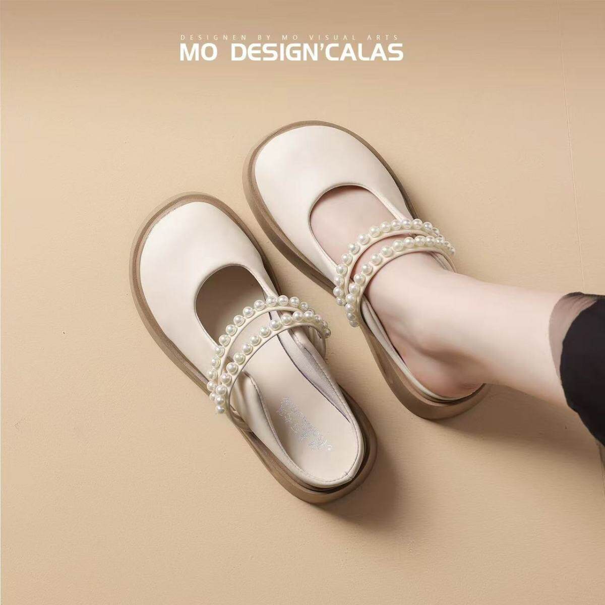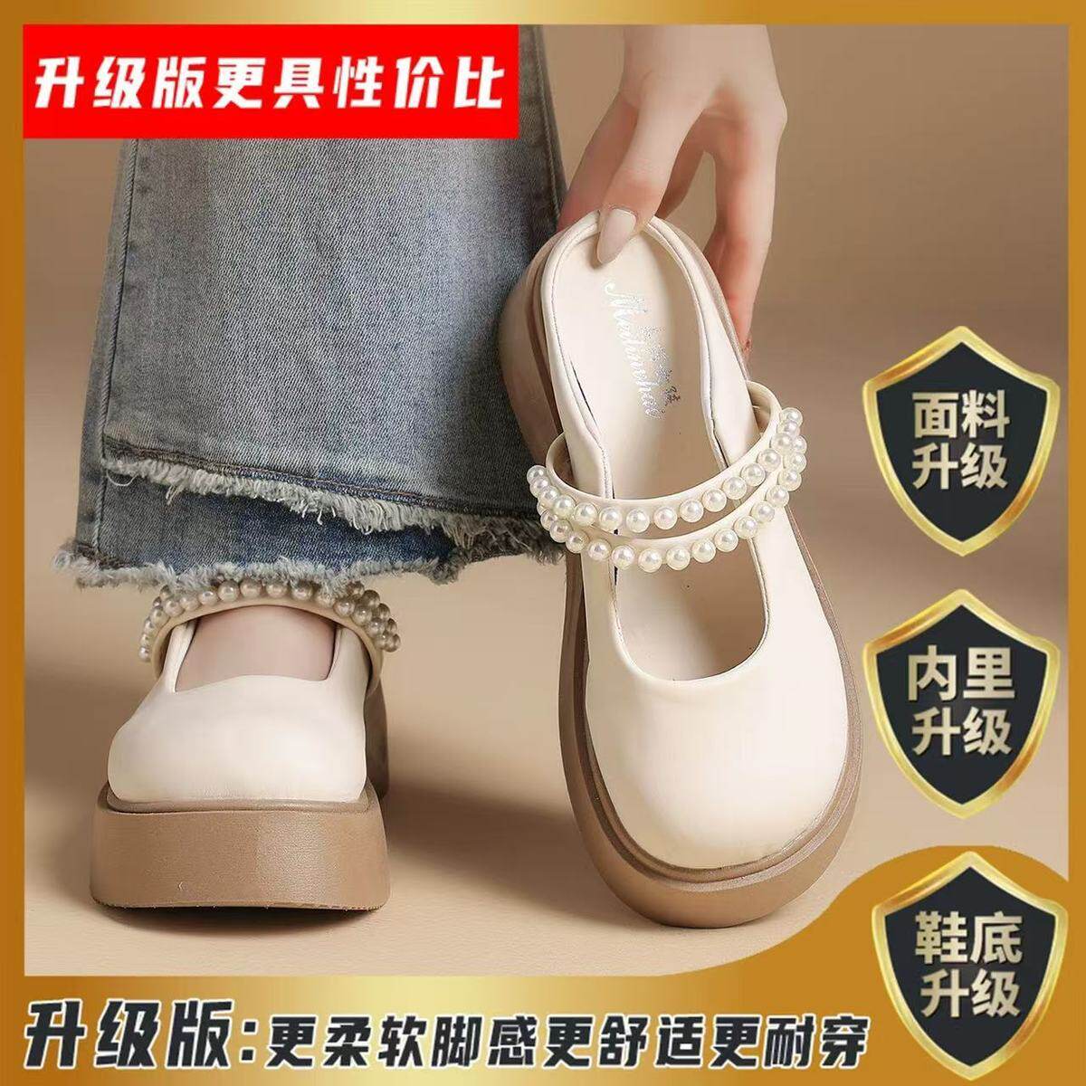 厚底勃肯鞋女2026春夏新款包头厚底拖鞋超火珍珠仙女玛丽珍半拖鞋
