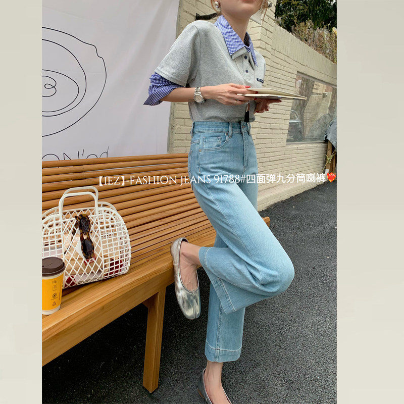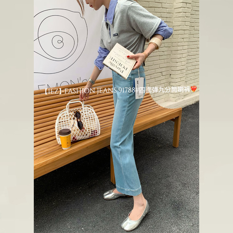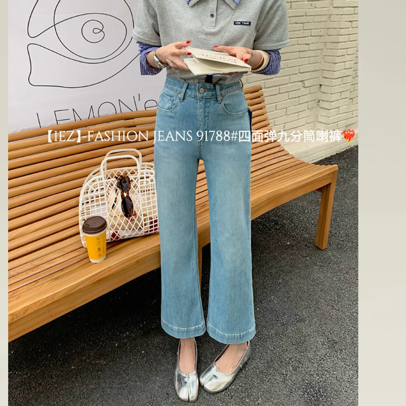 IEZ牛仔裤女夏薄款裤子女款小个子新款高腰显瘦九分微喇叭直筒裤