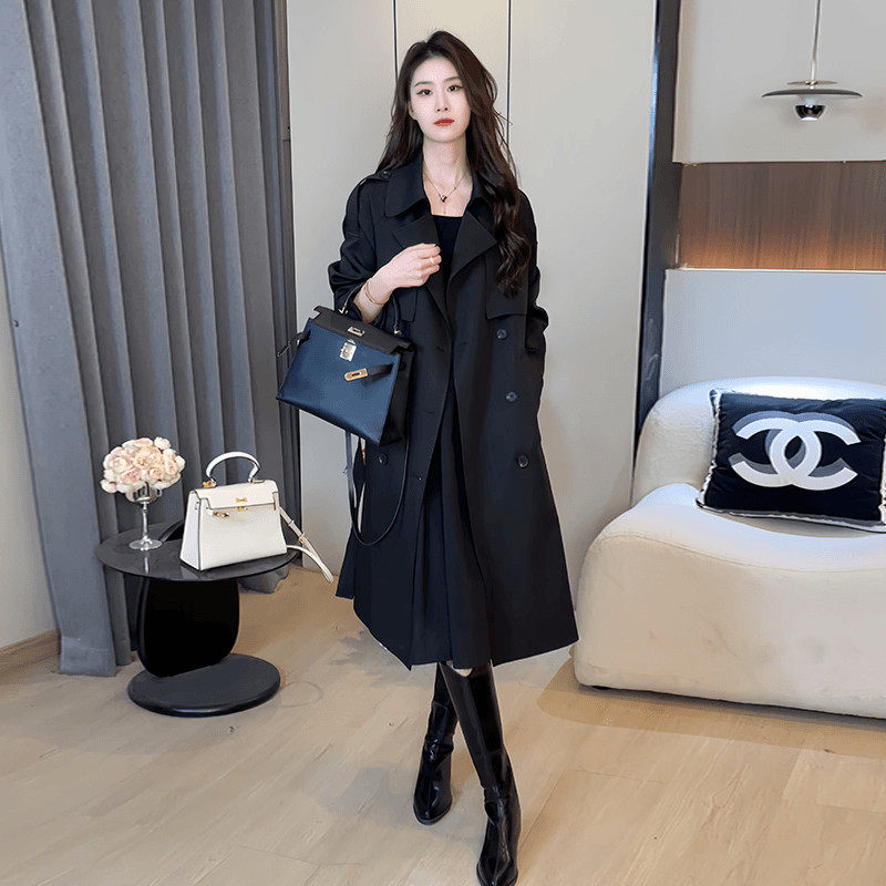 风衣外套女春装2026新款韩系中长款小个子高级感气质英伦过膝大衣