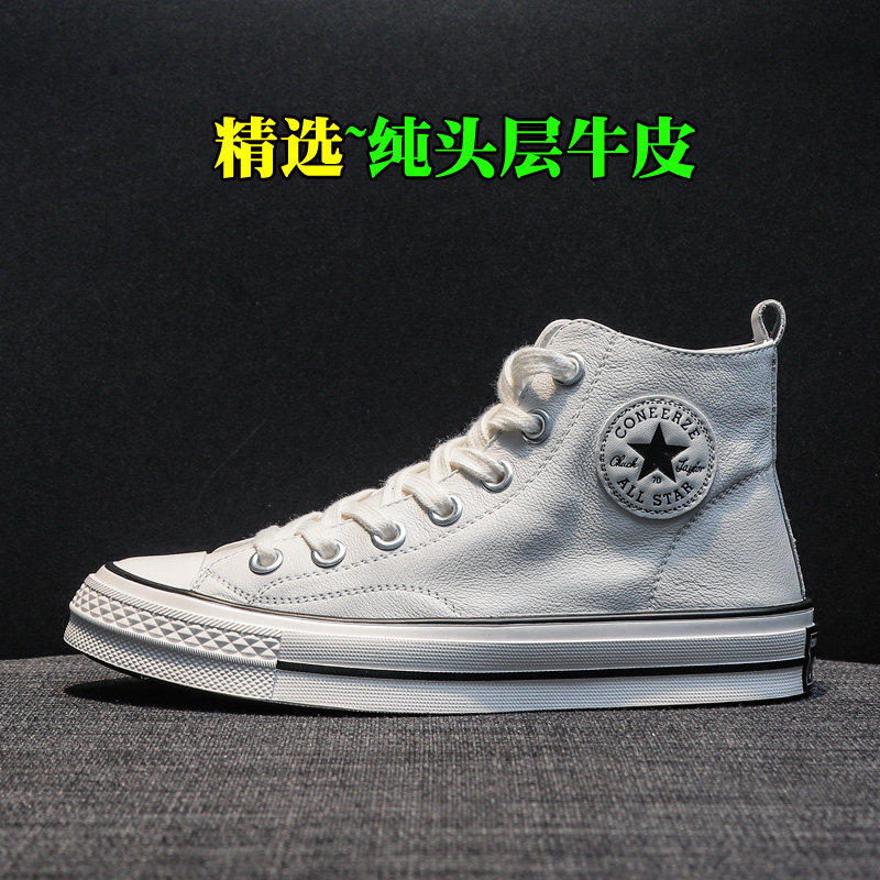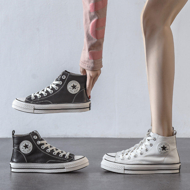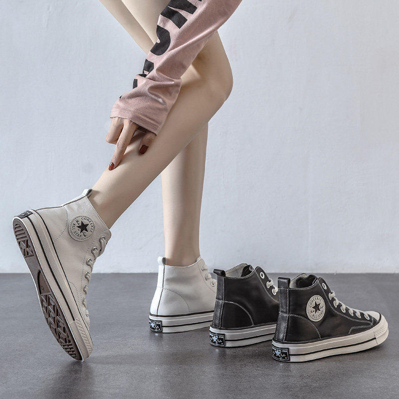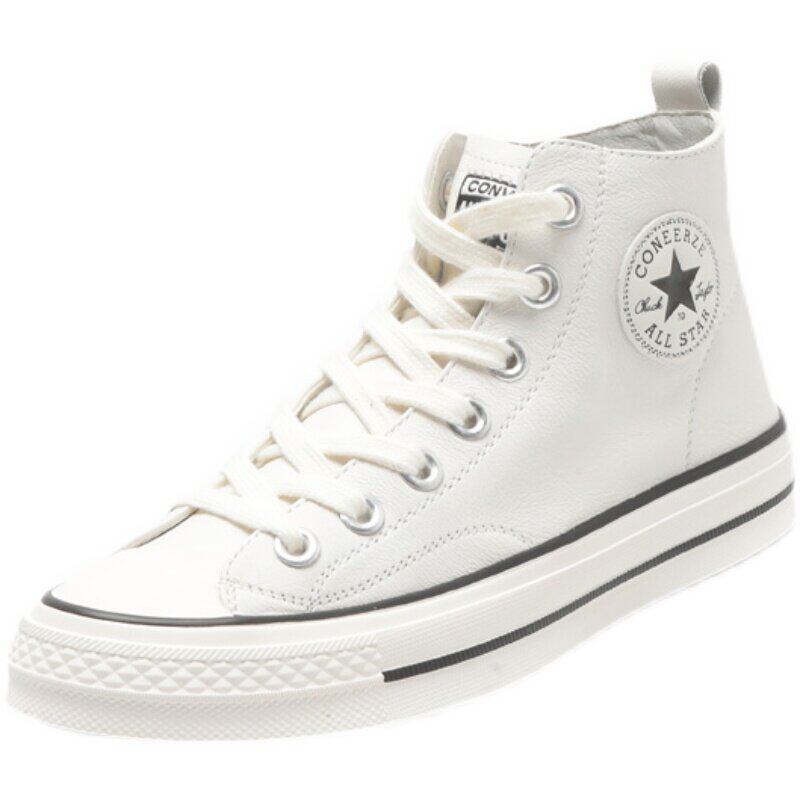 春款真皮女鞋头层牛皮休闲运动高帮小白鞋女款平底板鞋2025年新款