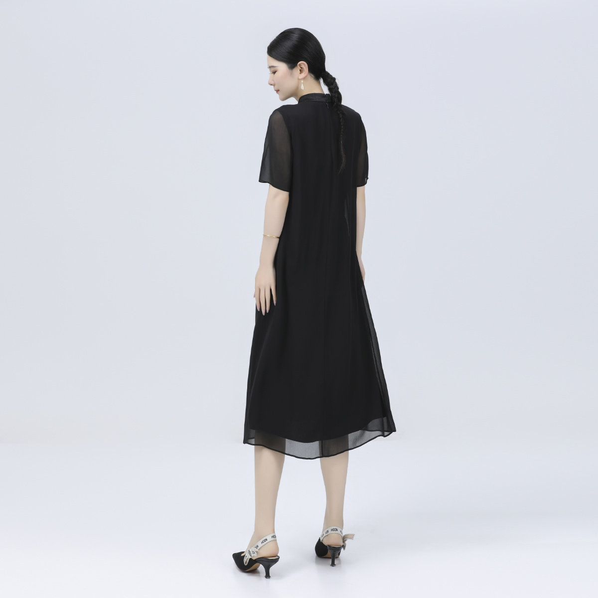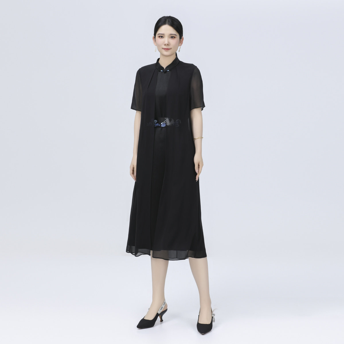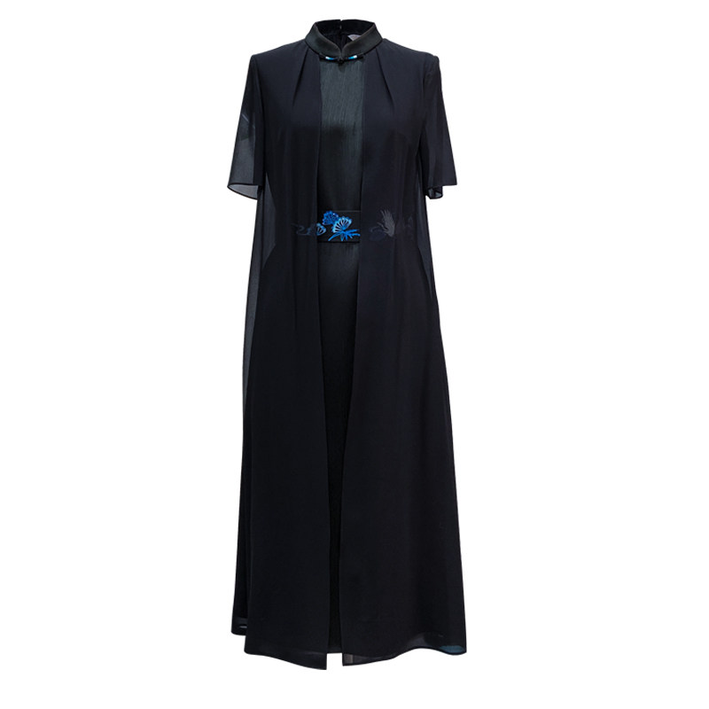 夏季中式醋酸桑蚕丝精致刺绣女士优雅气质日常通勤宽松瑞云连衣裙