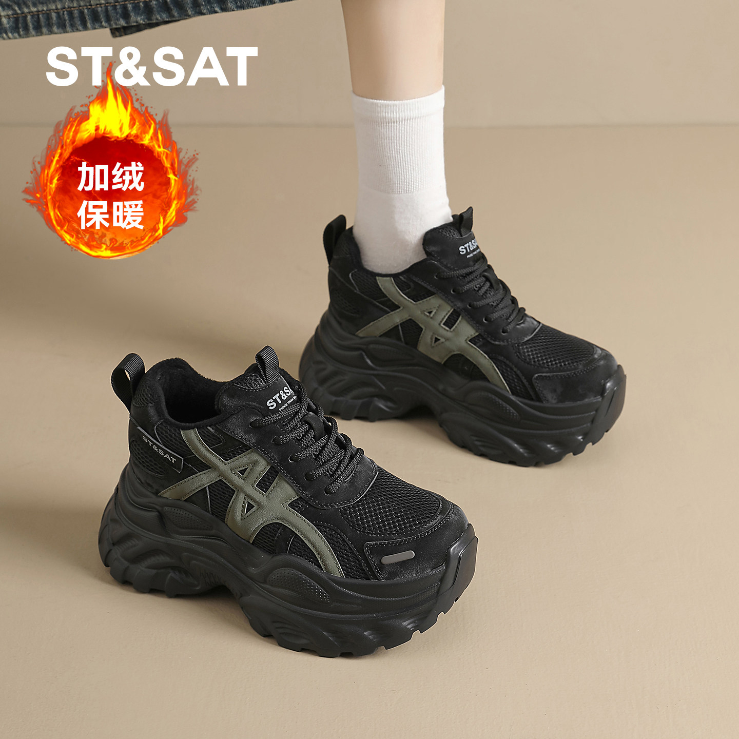 星期六内增高女鞋8CM厚底老爹鞋女2025秋冬加绒保暖小个子运动鞋