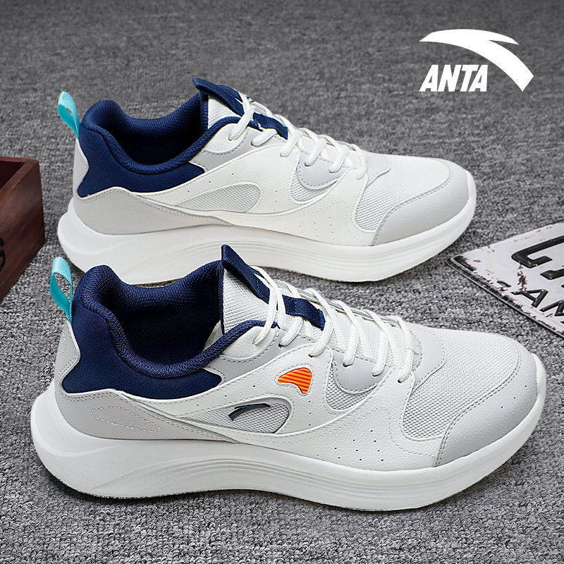 安踏男鞋白绿休闲鞋官方正品冬季2026新款网面软底减震跑步运动鞋