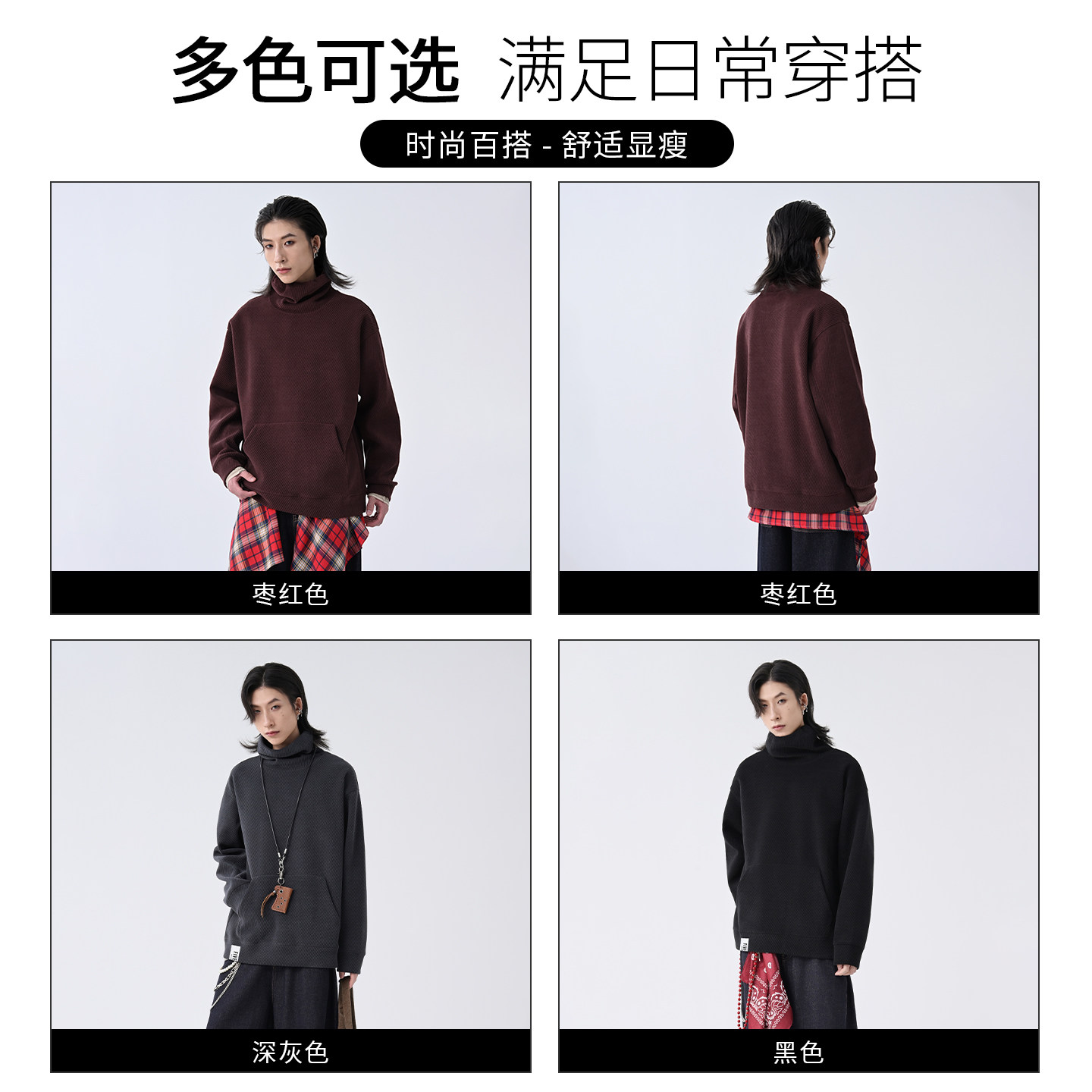 it FIVECM红色高领长袖毛衣男款2026春季新款痞帅高级感上衣