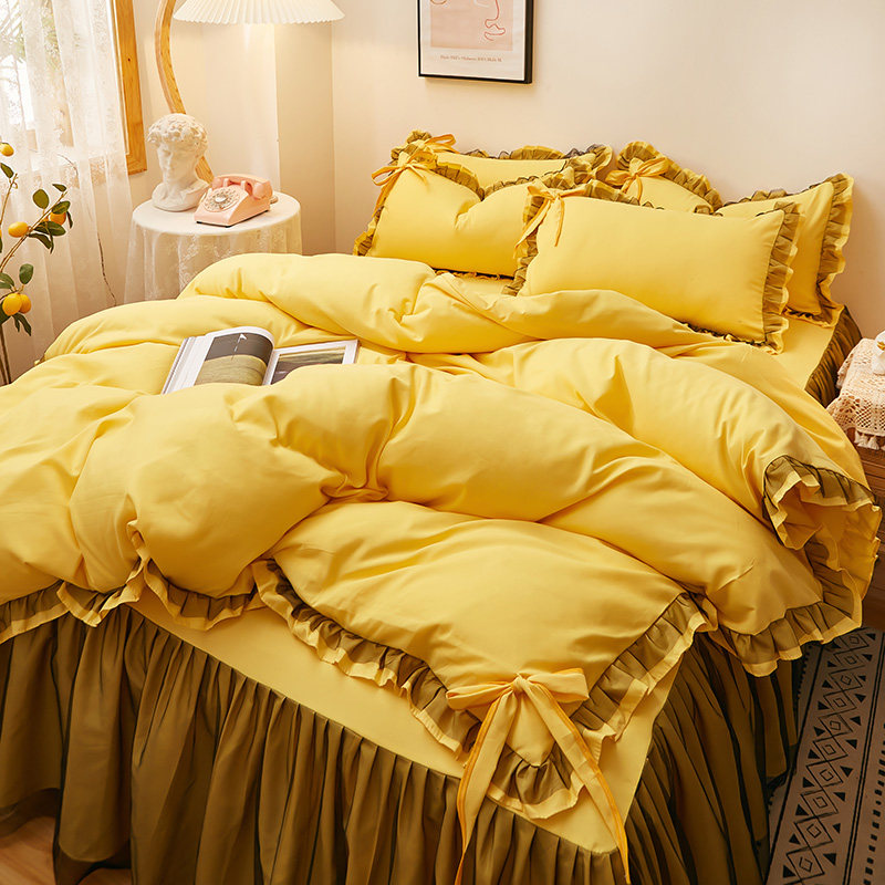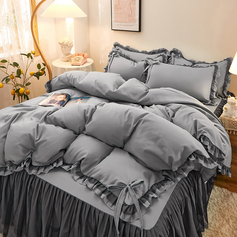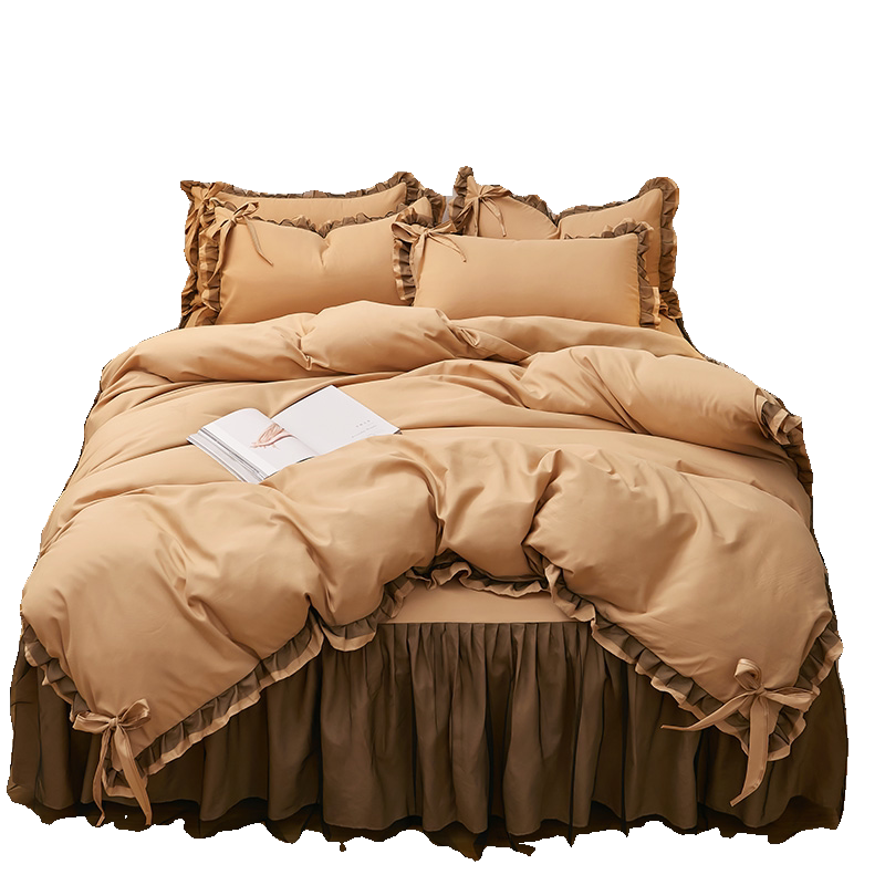夏季薄款少女公主风纯色纯棉床裙四件套轻奢刺绣床单被套床上用品