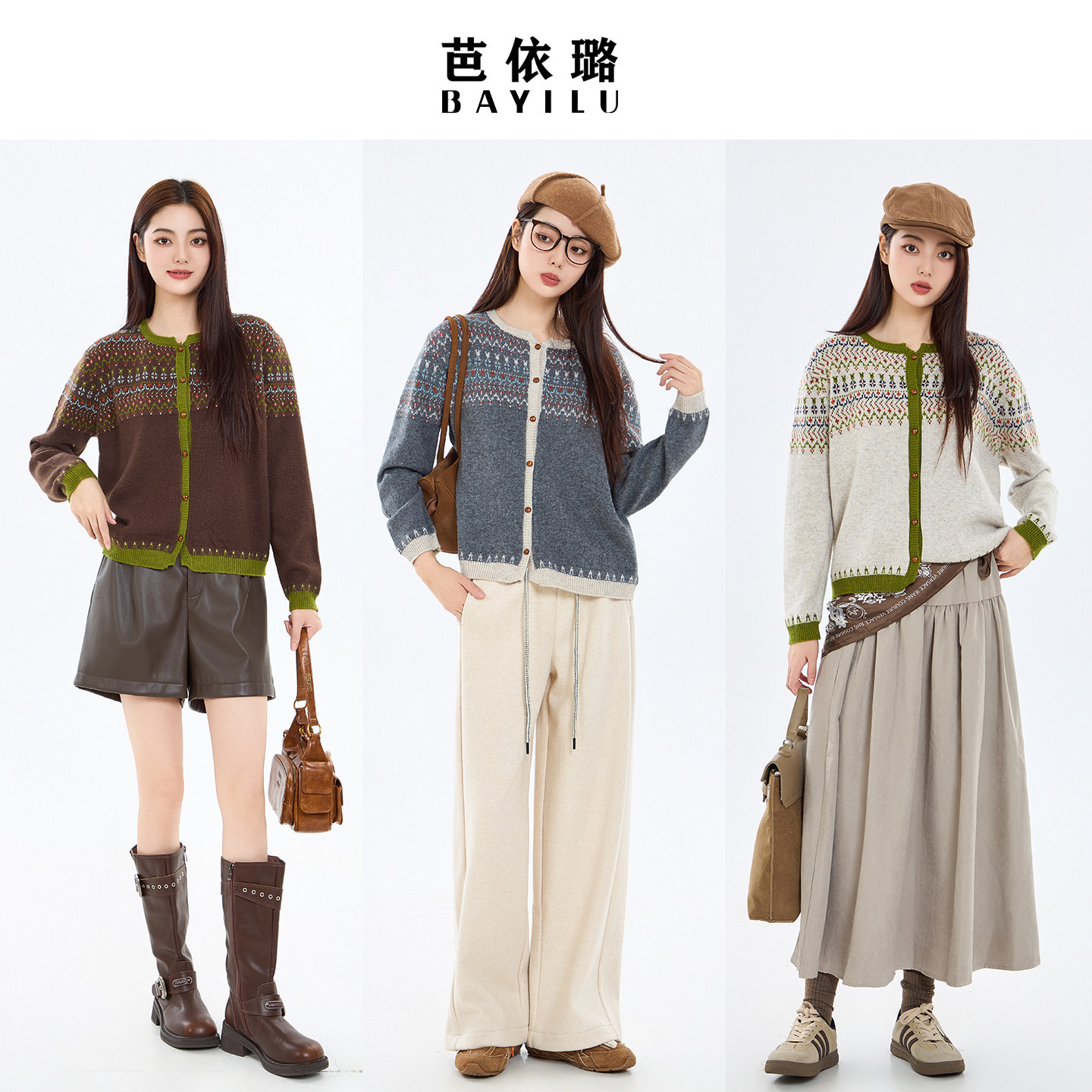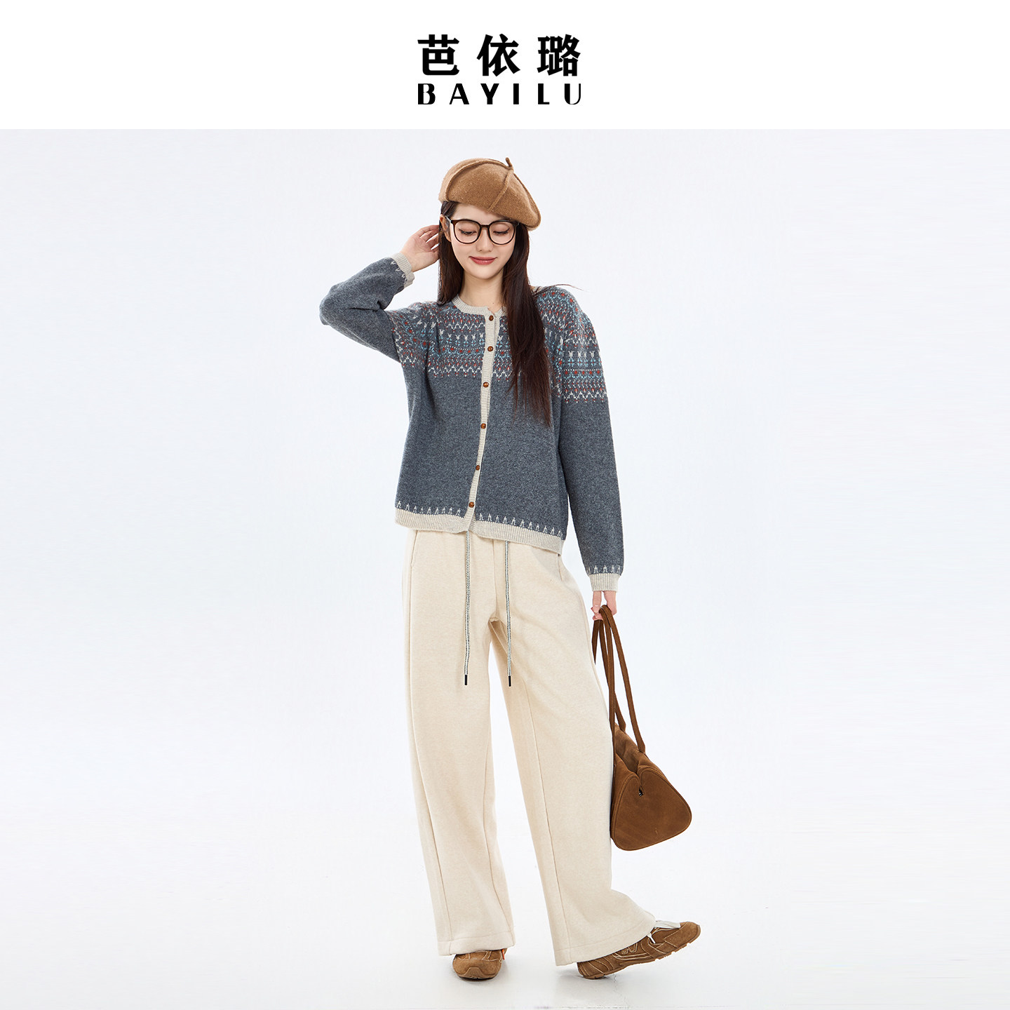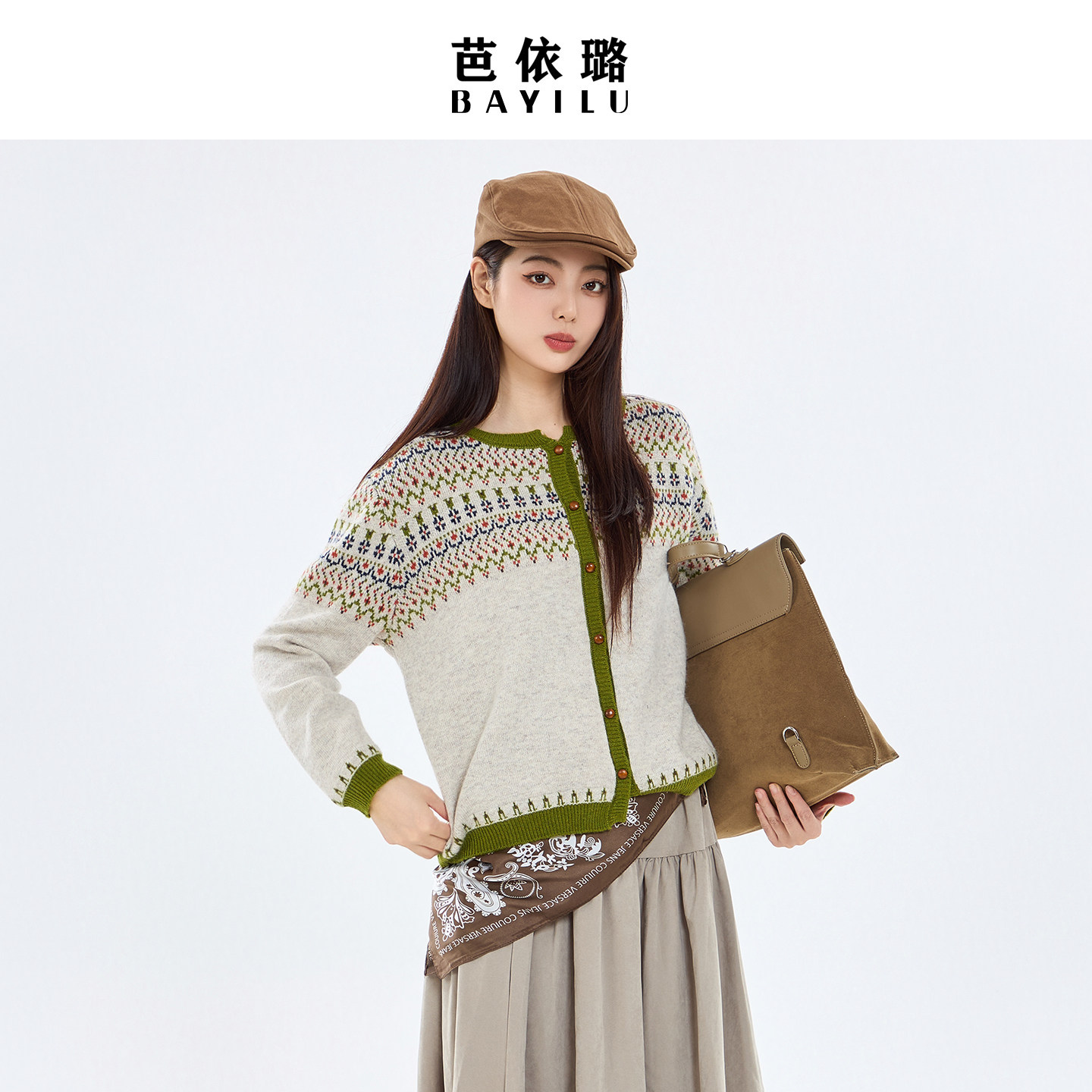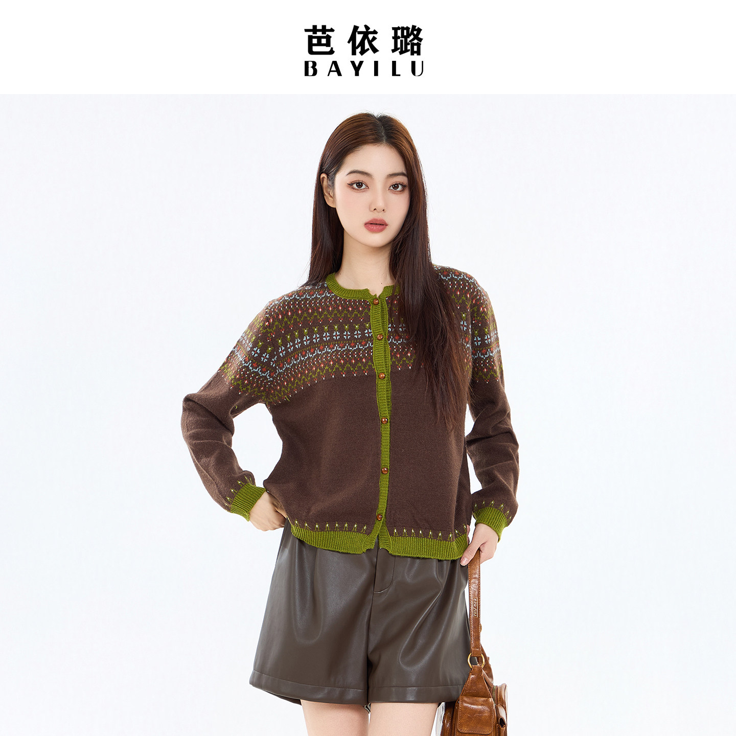 芭依璐2026早春新款毛衣针织衫女开衫慵懒风复古费尔岛毛衫女装