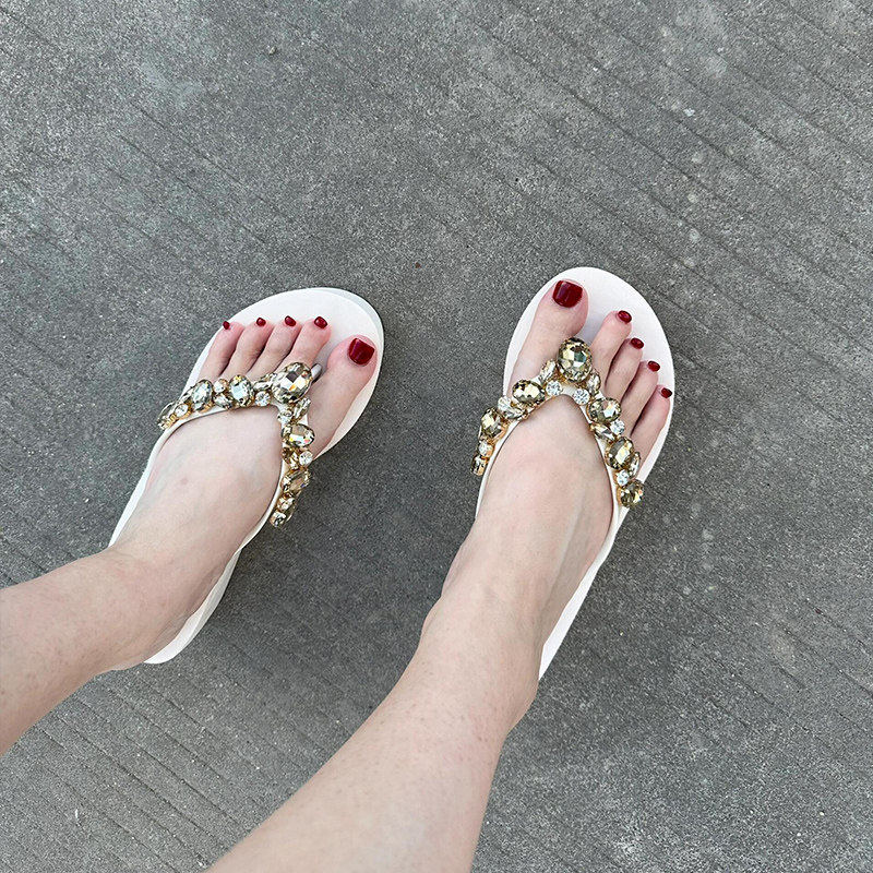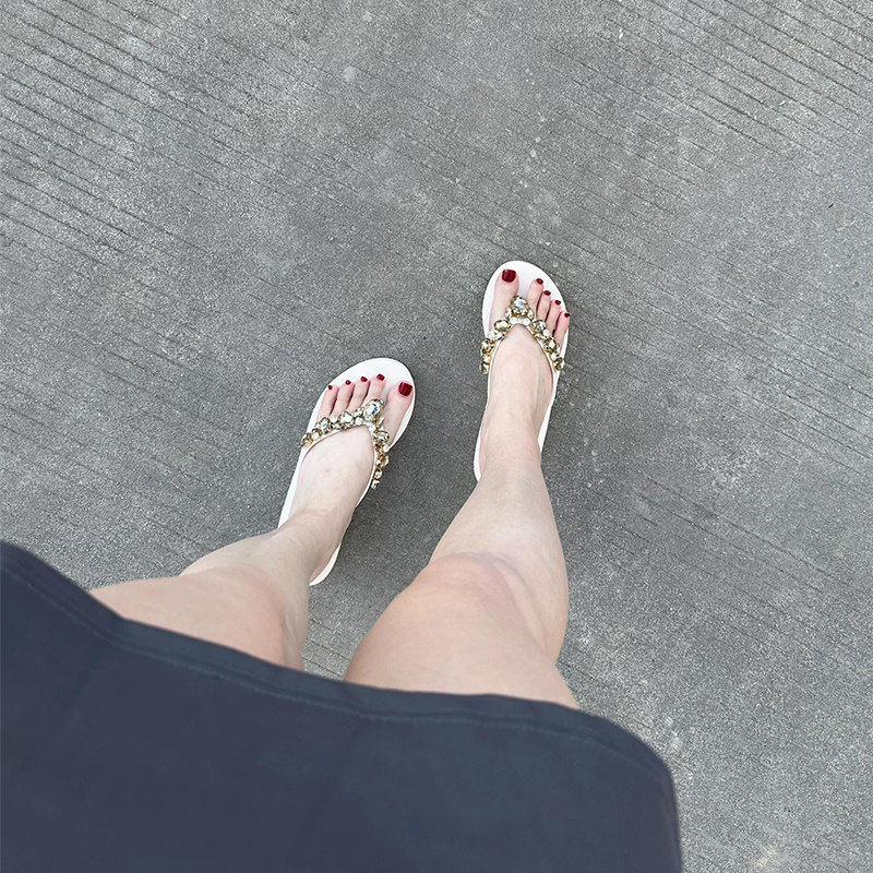 日本水钻厚底人字拖女夏外穿2026新款增高防滑海边沙滩度假凉拖鞋