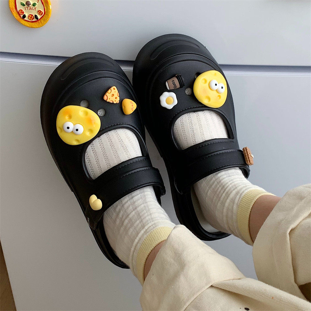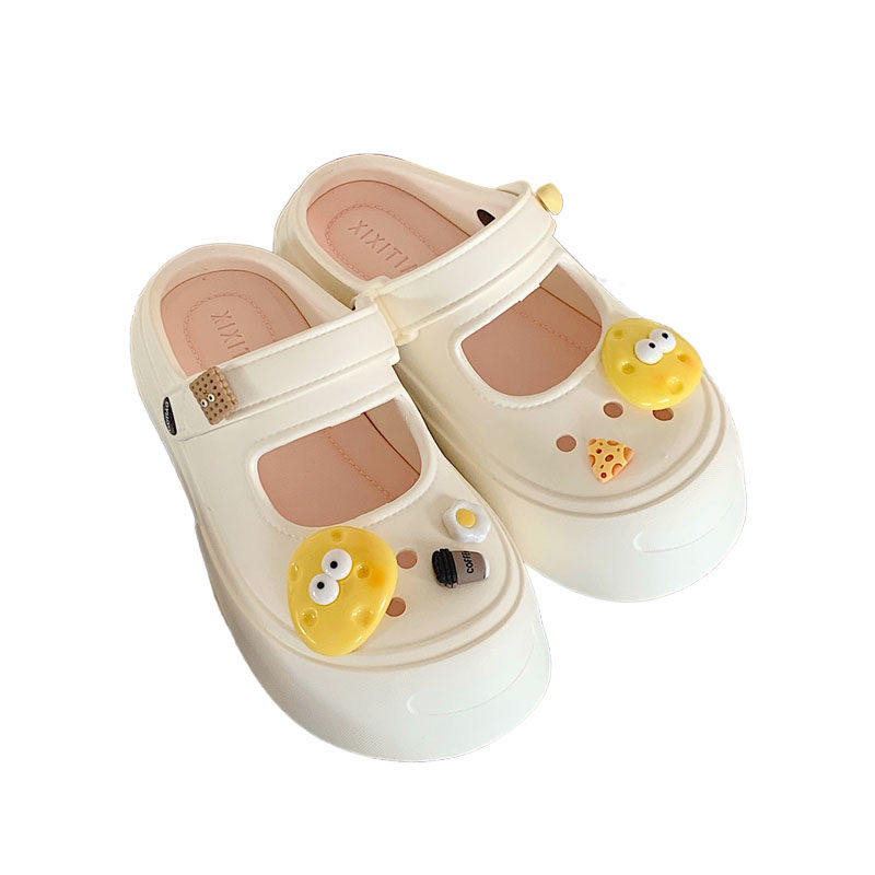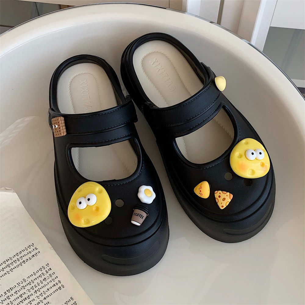海边度假厚底增高沙滩凉拖鞋新款卡通奶酪防滑户外玛丽珍凉鞋女夏