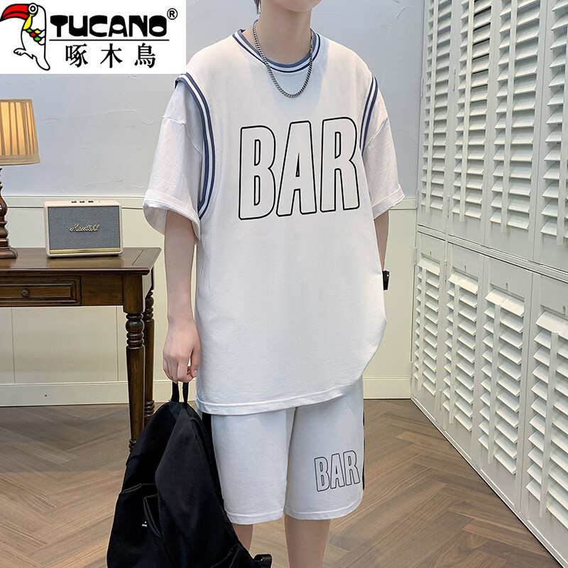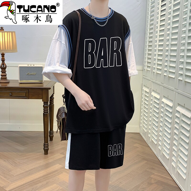 啄木鸟夏季短袖t恤男青少年高中初中学生篮球服套装冰丝速干球衣