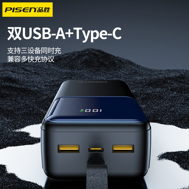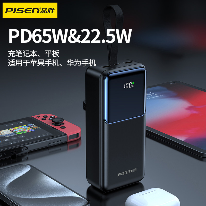 品胜充电宝40000毫安65W超级快充27000大容量3C认证投影仪官方旗舰店60000移动电源适用华为小米苹果17手机16