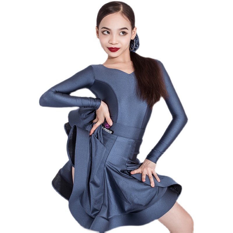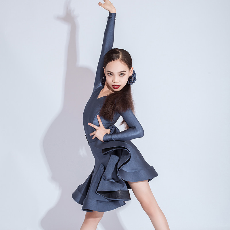 星辰舞服拉丁舞规定服比赛服长袖女儿童新款设计师定制有光面料