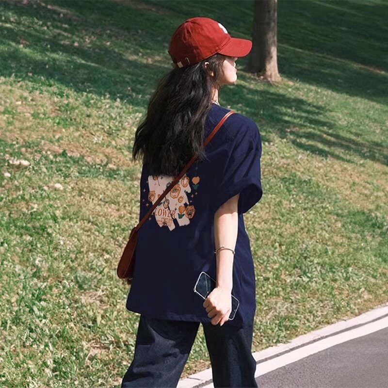 藏蓝色正肩短袖t恤女2026新款夏季爆款内搭纯棉半袖宽松美式上衣