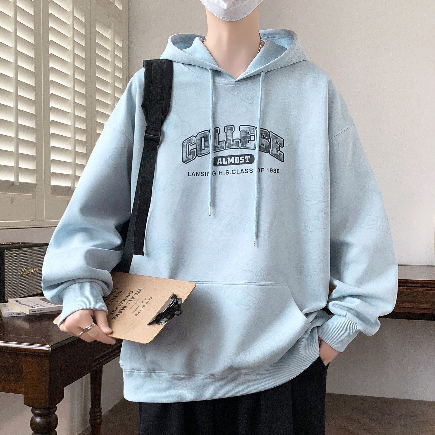 秋冬季加绒卫衣男生新款青少年学院风袋鼠兜长袖T恤帅气加厚外套