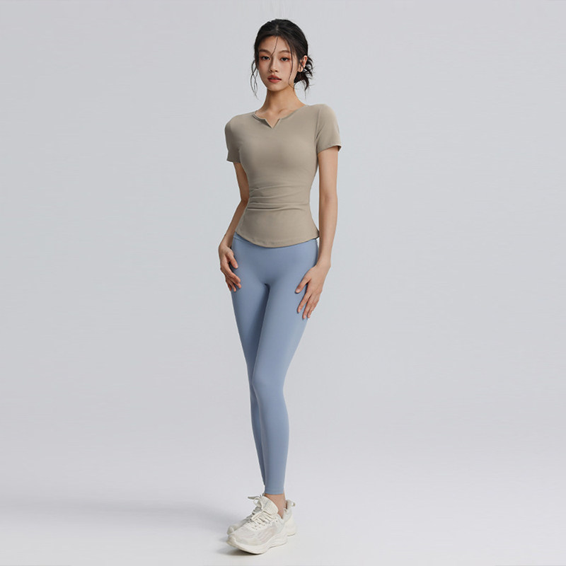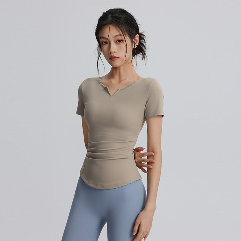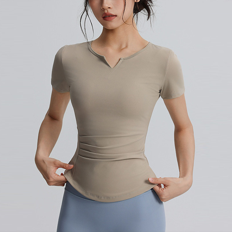 V领运动T恤不带胸垫紧身显瘦瑜伽服上衣速干透气跑步外穿健身短袖
