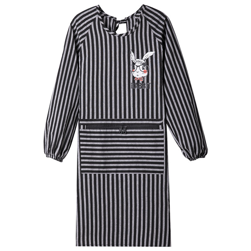 罩衣全棉布料反穿显瘦条纹包包衣拉链大口袋防尘围裙男女成人护衣