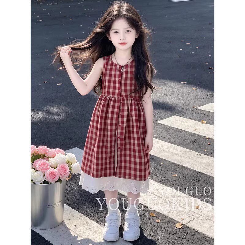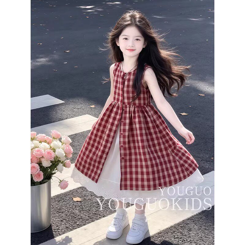 女童连衣裙夏装2026新款洋气儿童格子背心裙女孩夏季韩版套装裙子