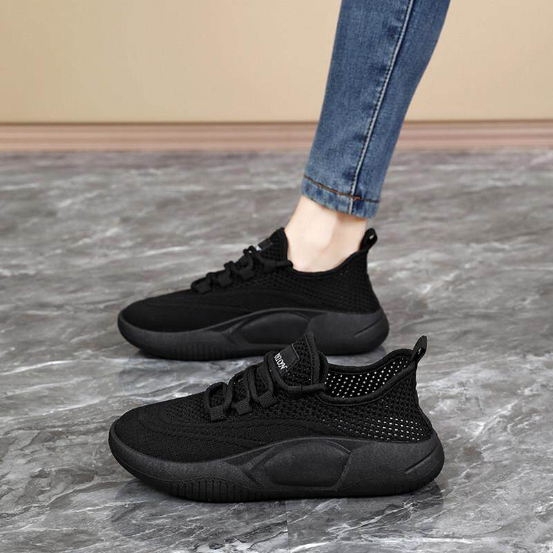 全黑色运动鞋女款2026新款春季网面透气网鞋轻便旅游鞋34码0323k