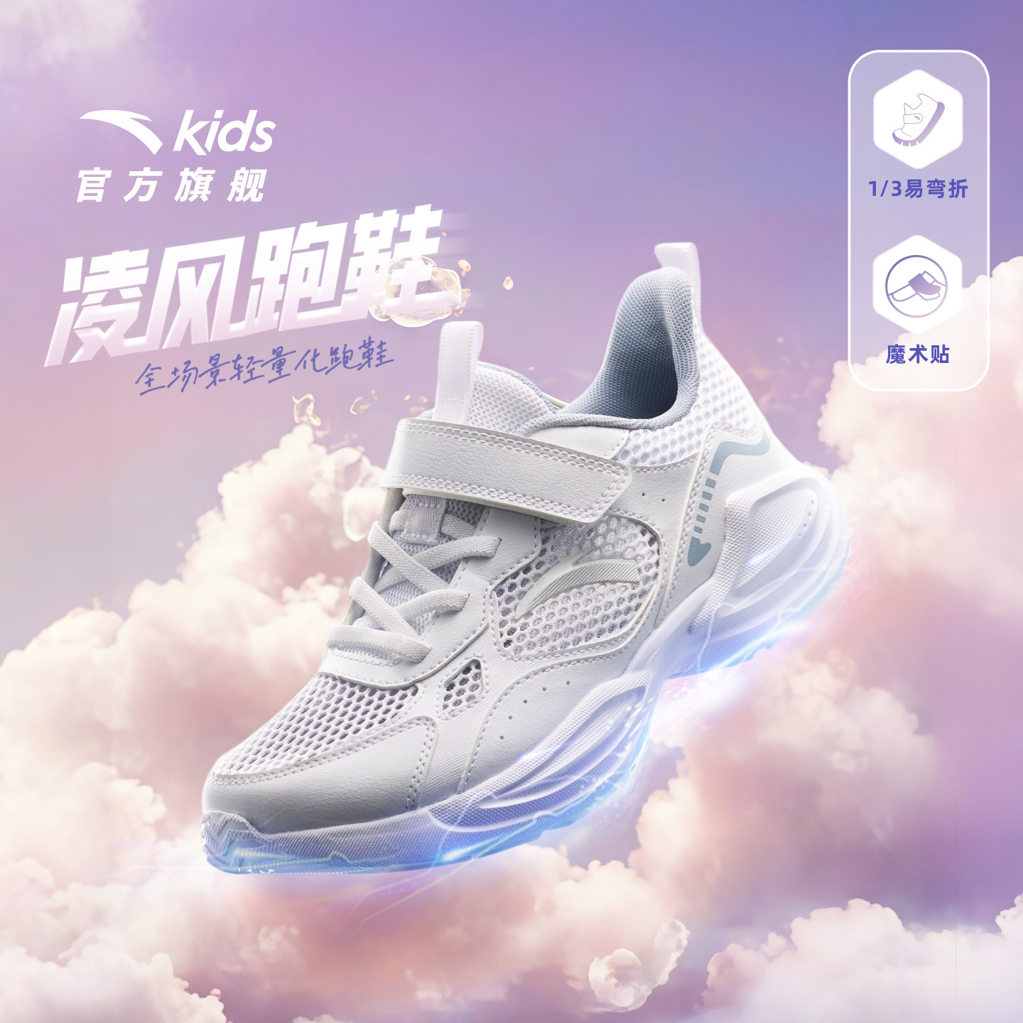 安踏童鞋儿童纽扣运动鞋男童2026夏季新款女大童跑步鞋学生小白鞋
