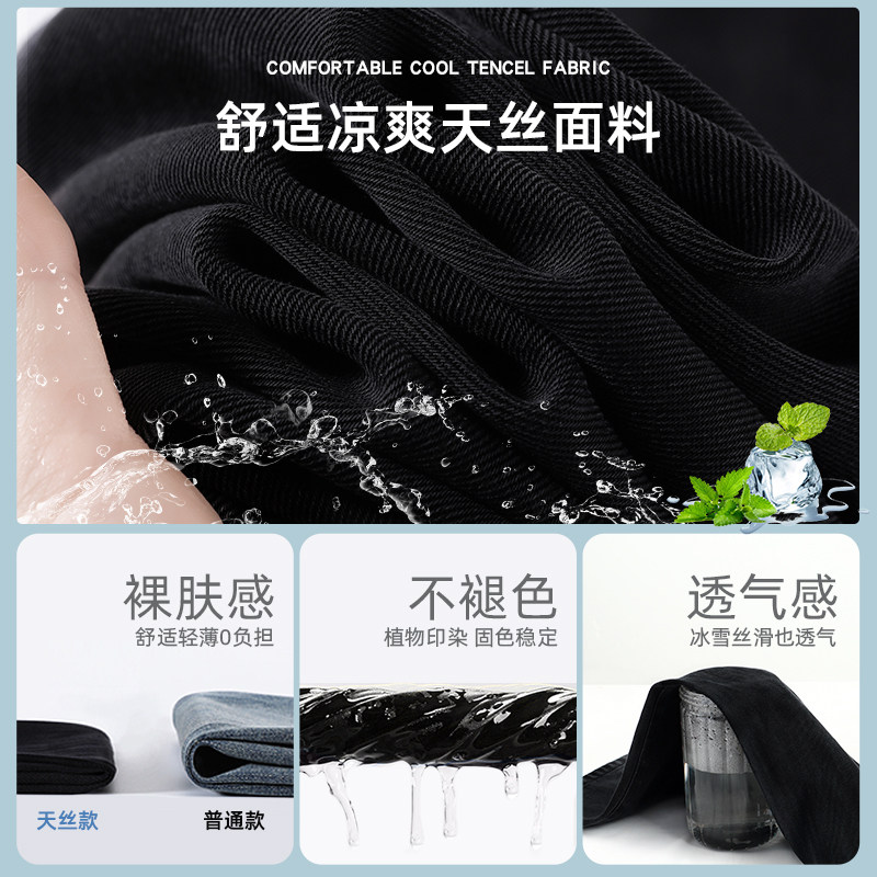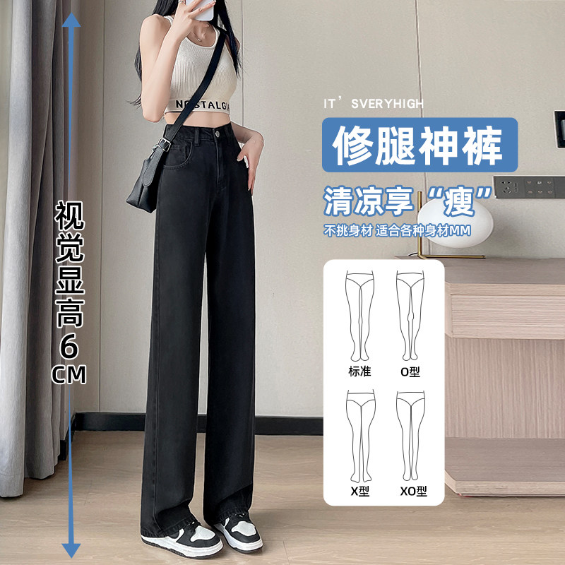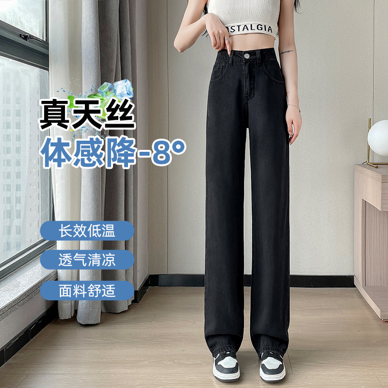 天丝牛仔裤女夏季薄款2026年新款直筒小个子冰丝窄版阔腿黑色裤子