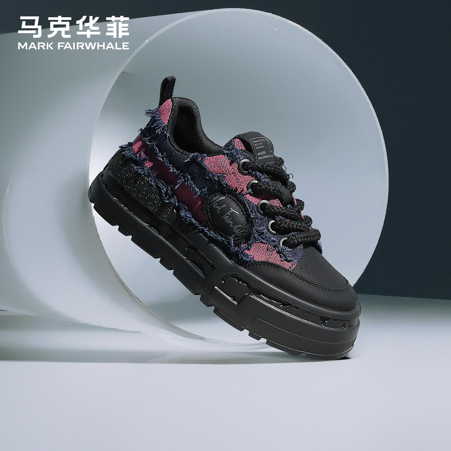 马克华菲男鞋2026夏季新款透气厚底百搭小黑鞋高级感帆布休闲板鞋