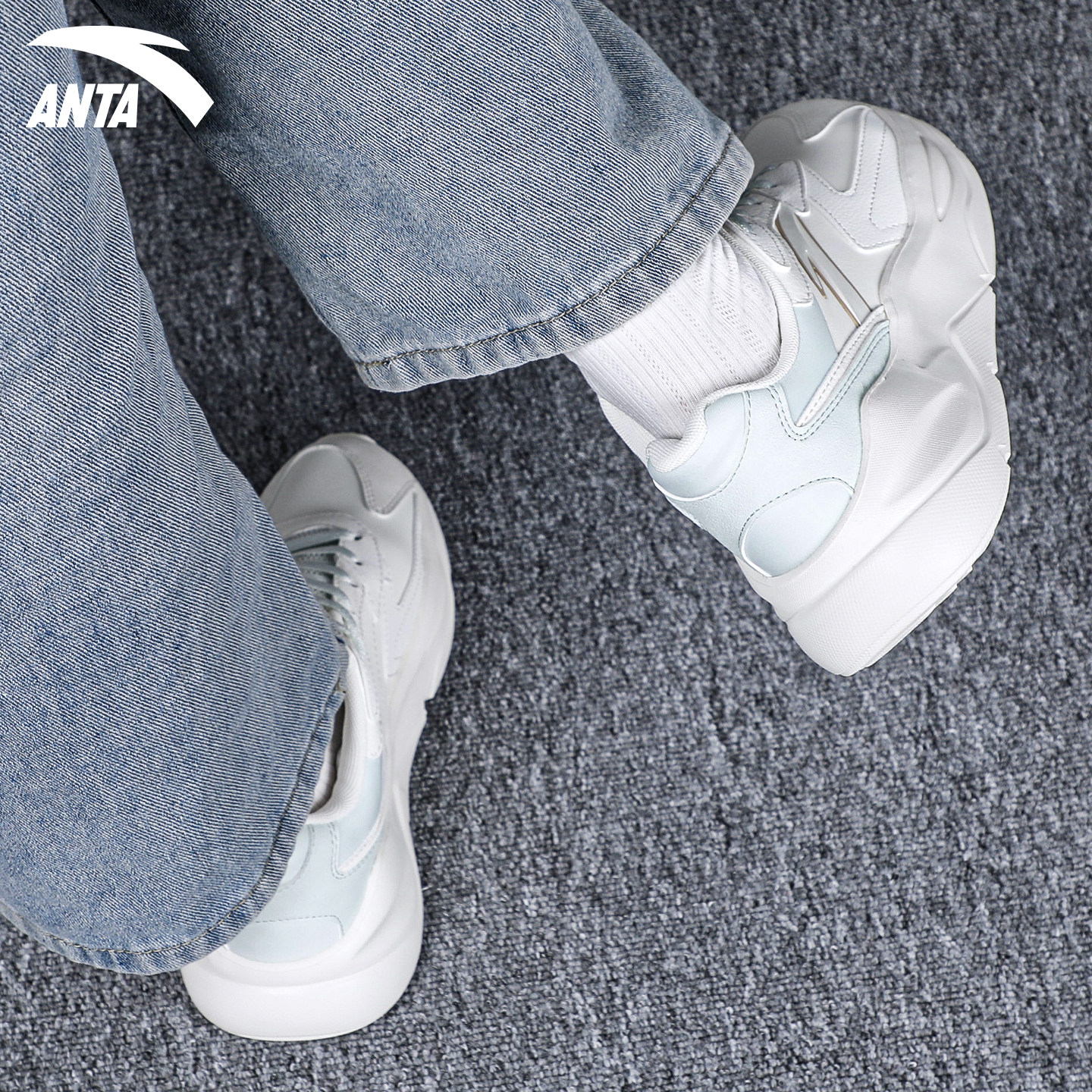 安踏女鞋厚底老爹鞋春季2026新款官方正品皮面休闲潮流运动鞋女款