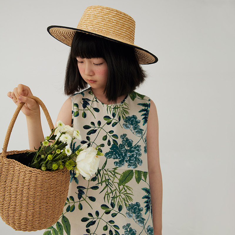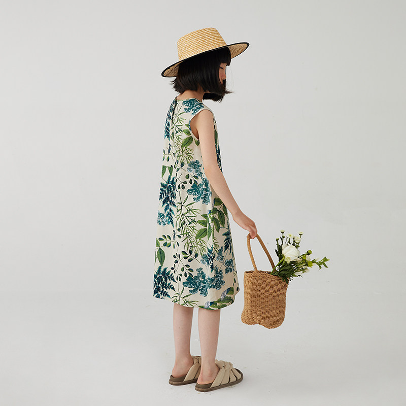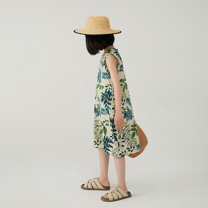 NNGZ女童植物印花度假风连衣裙夏季儿童无袖背心裙洋气童装裙子