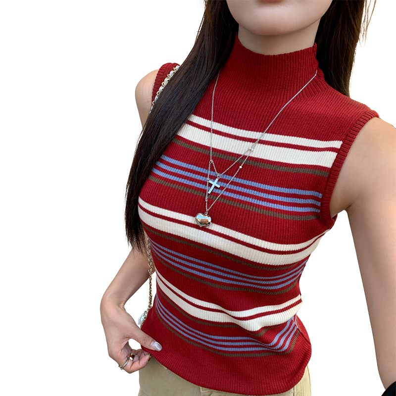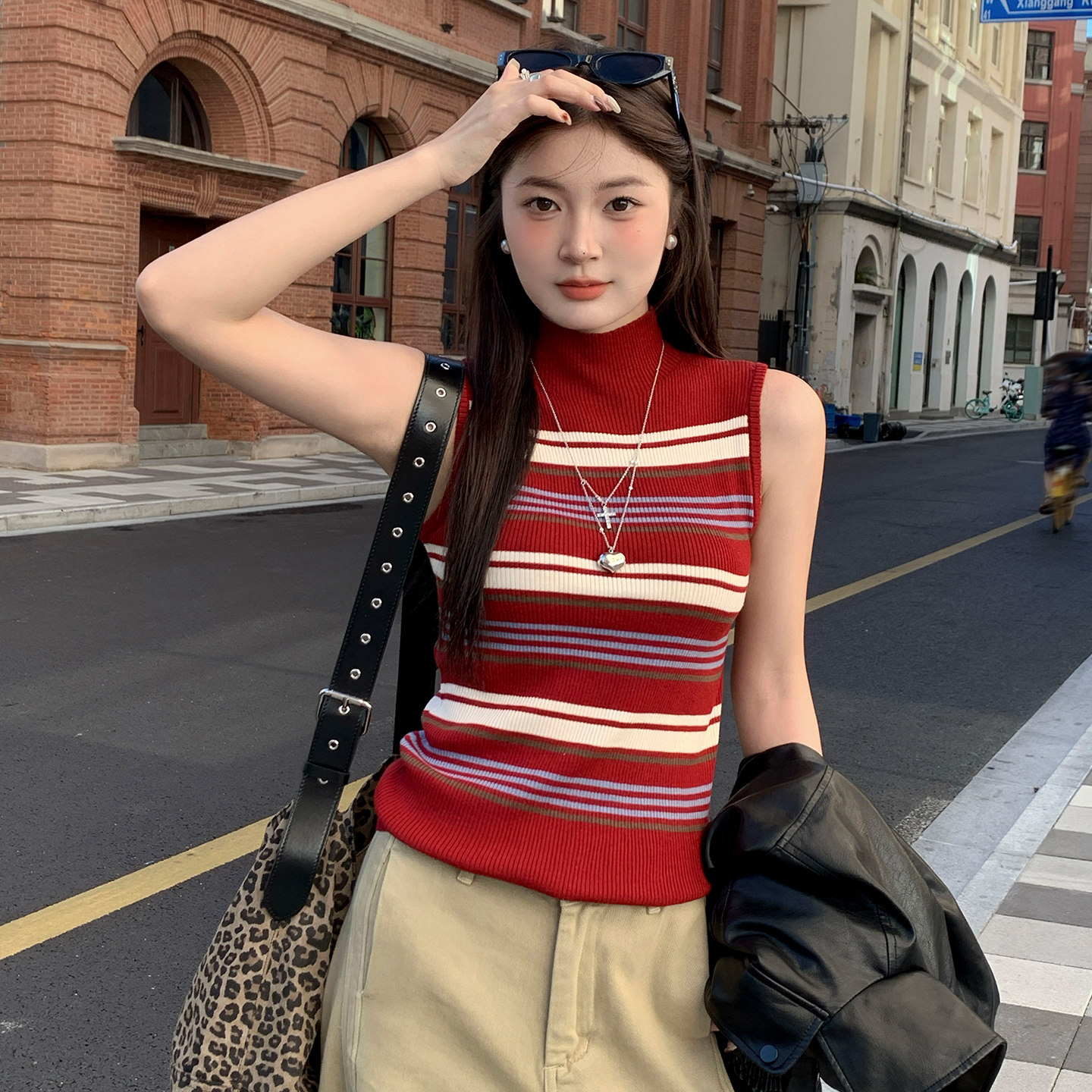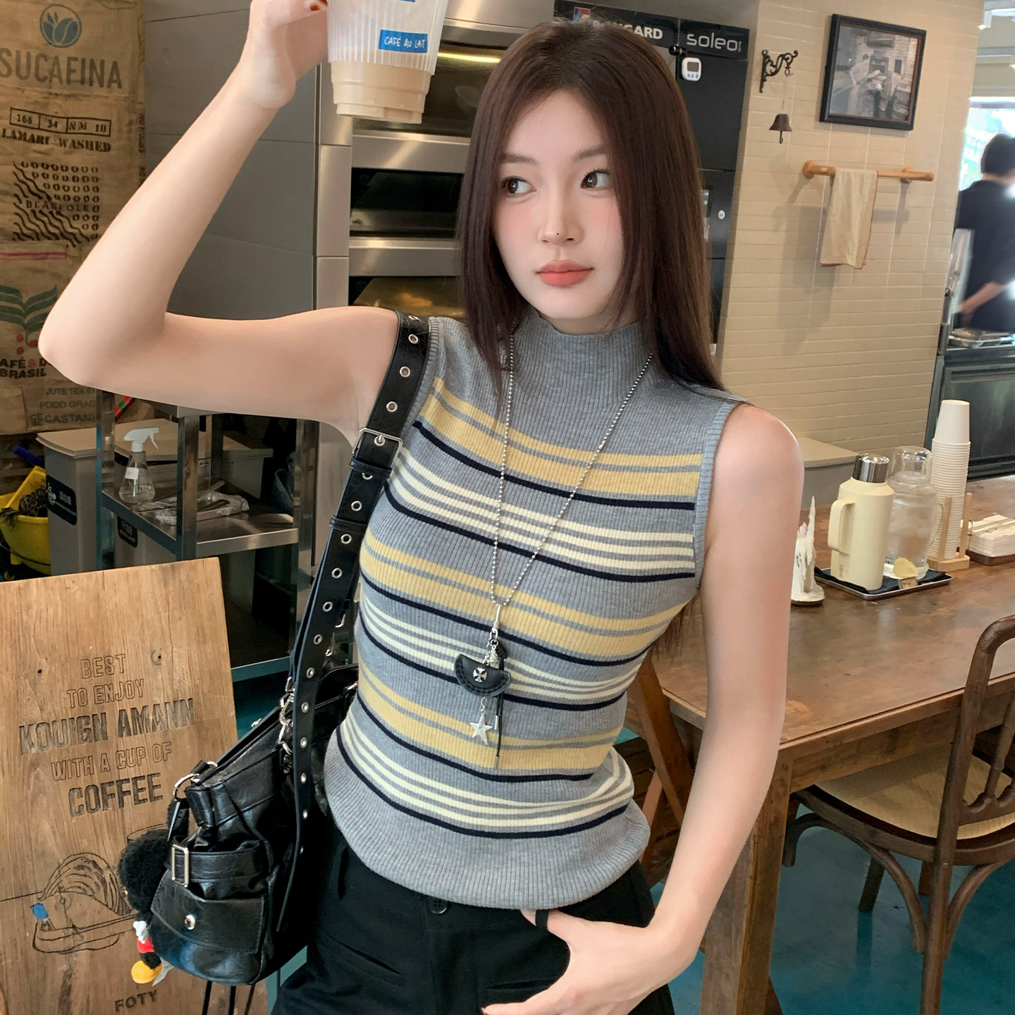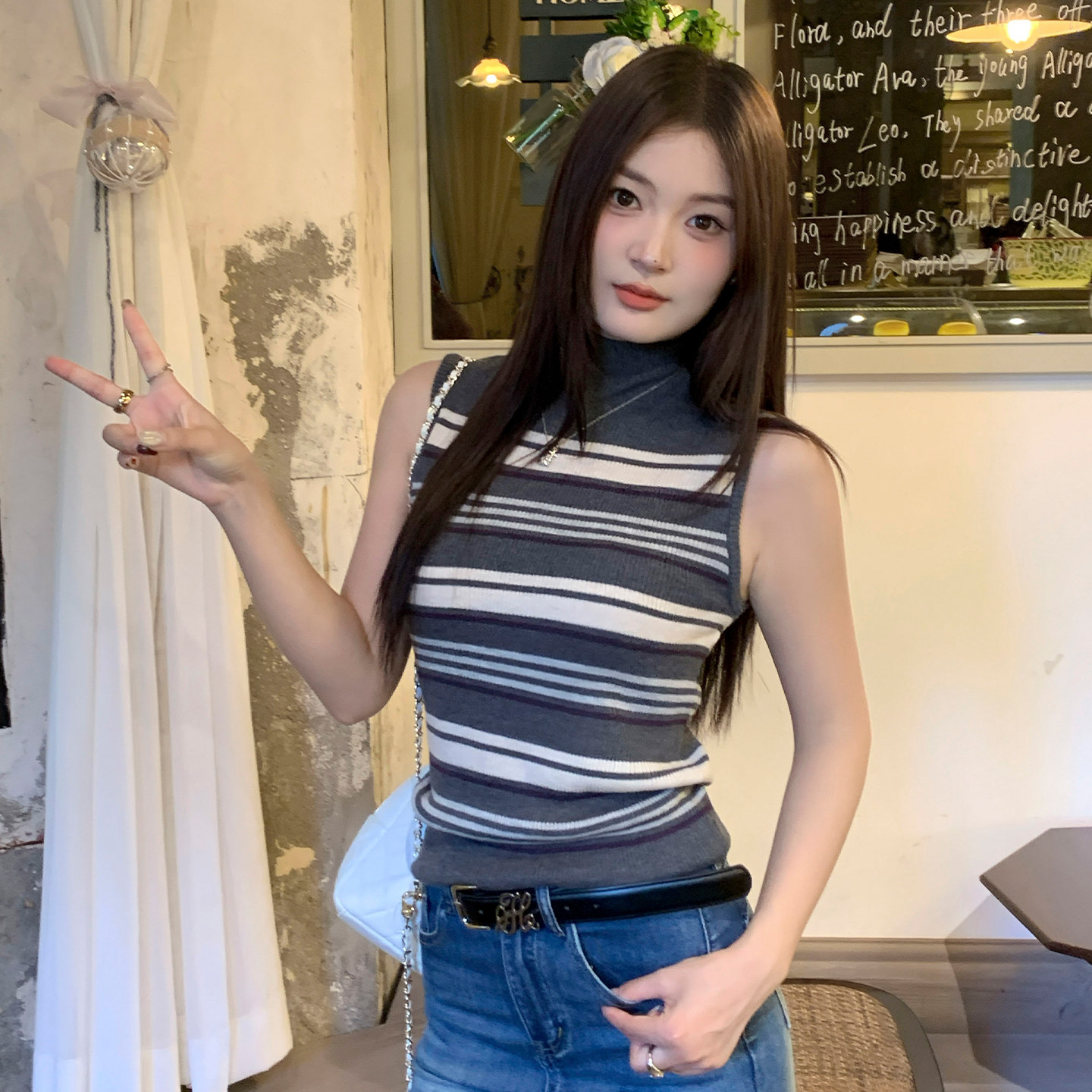 龙妹棕咖色美式条纹针织吊带背心女外穿内搭2026新款早春气质上衣