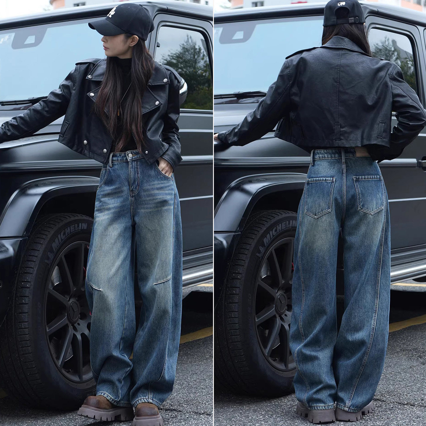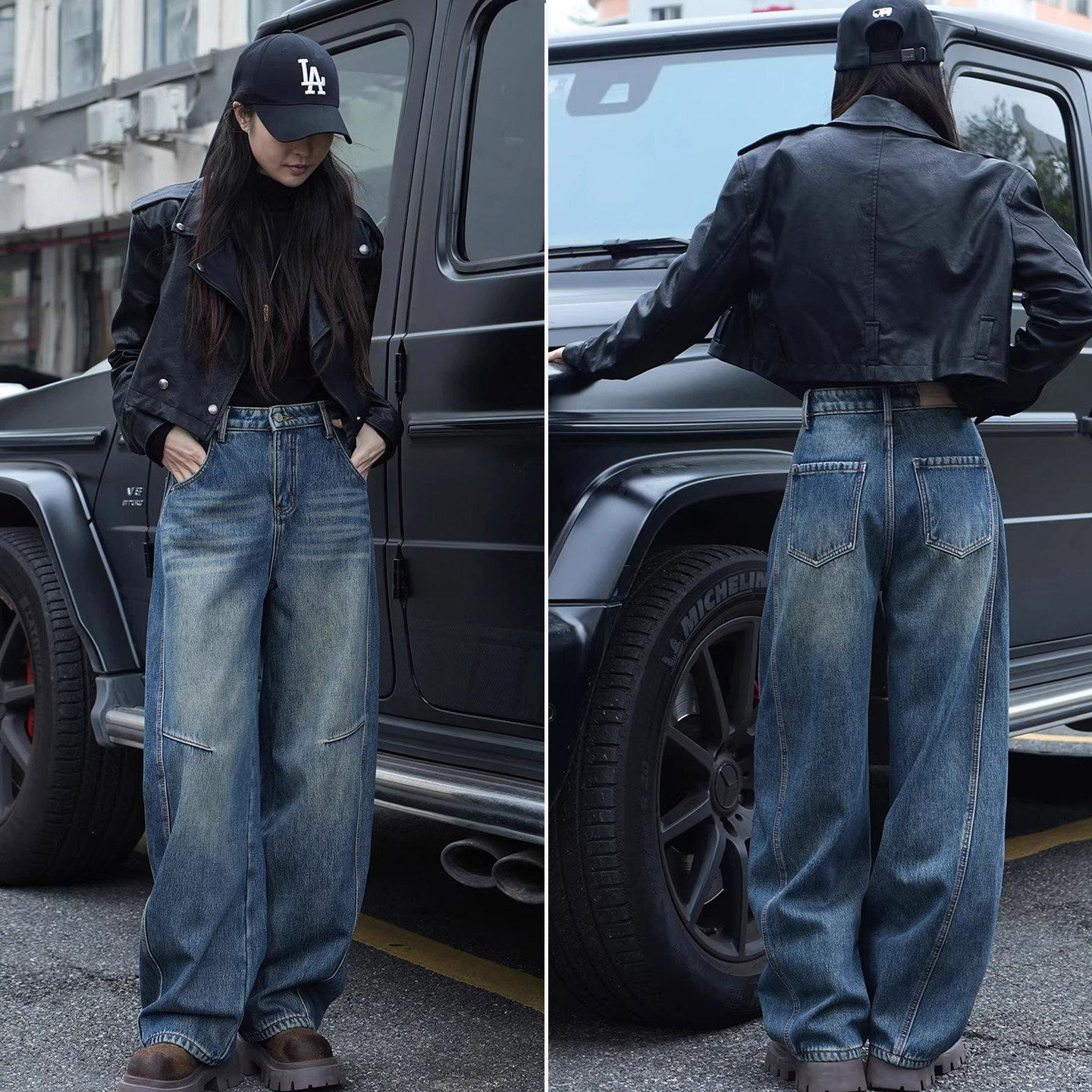 弯刀牛仔裤女2026春秋新款加绒长裤宽松阔腿高腰复古风镰刀牛仔裤