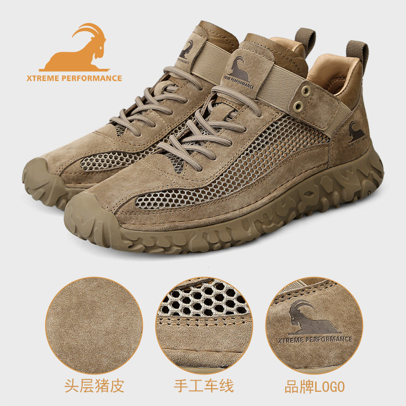 公羊男鞋2026新款春季透气薄款户外休闲鞋男款百搭轻便夏天网面鞋