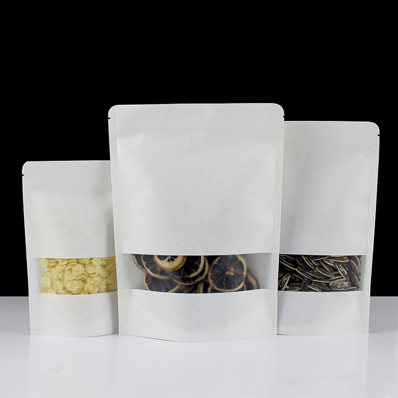 白色自立牛皮纸袋烘焙自封袋磨砂开窗曲奇核桃食品包装袋全套样品