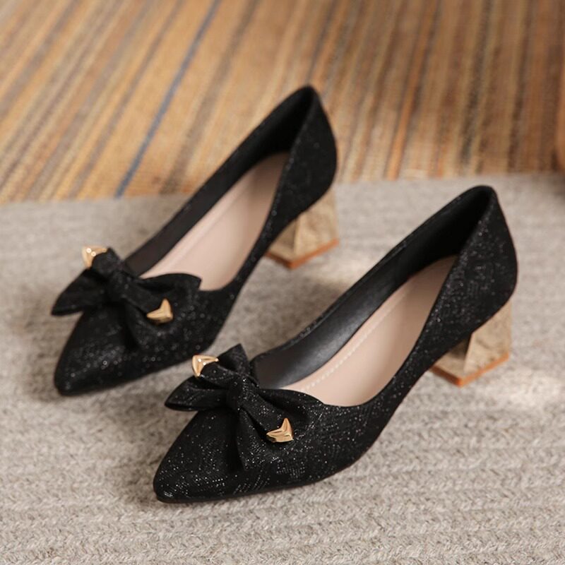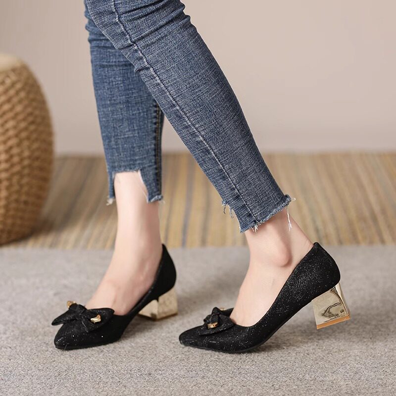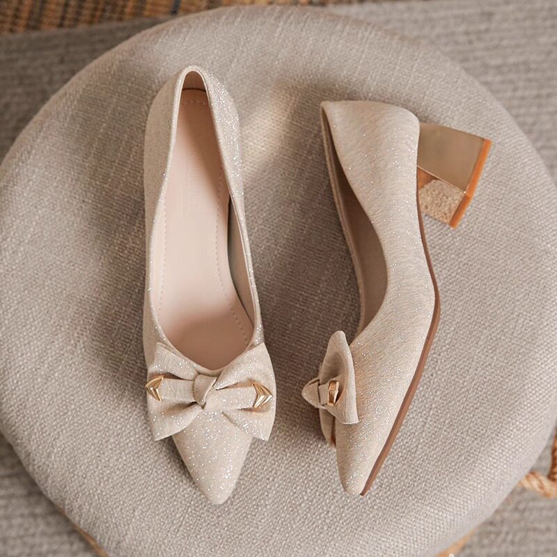 法式粗跟高跟鞋女2025年新款春夏季百搭配裙子单鞋不累脚大码女鞋