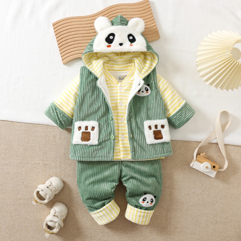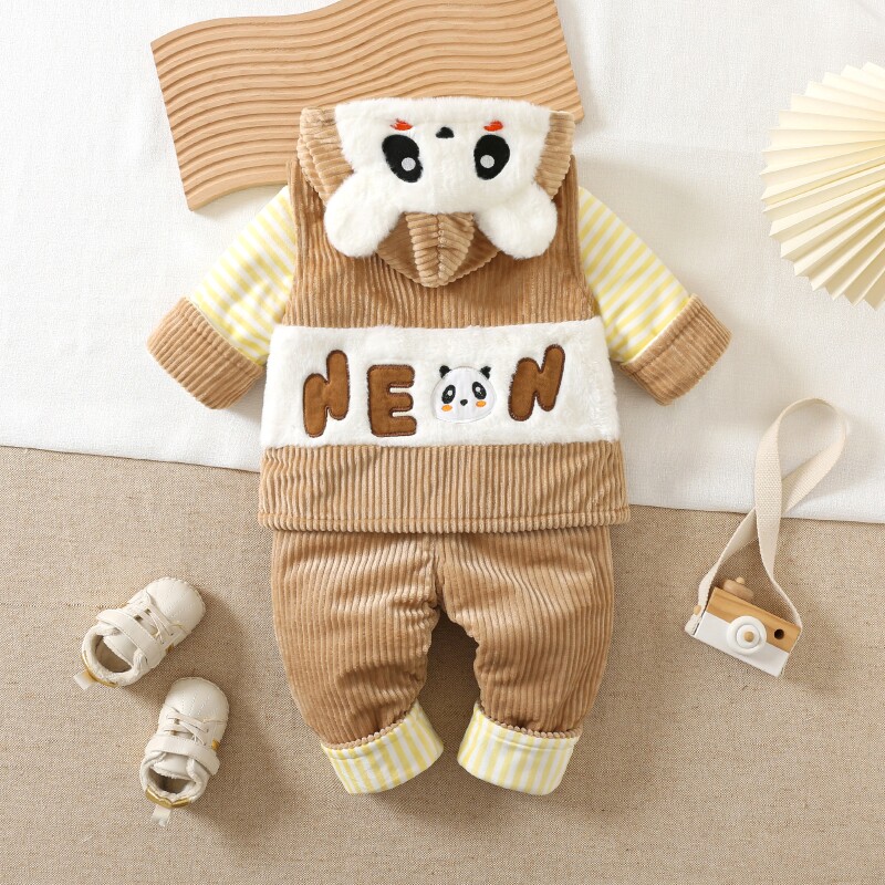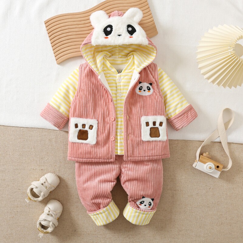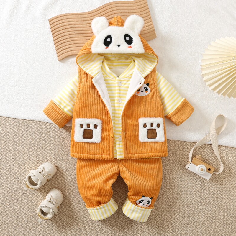 男宝宝薄棉外出服婴儿春秋冬装女01-2岁加厚马甲三件套婴幼儿棉衣