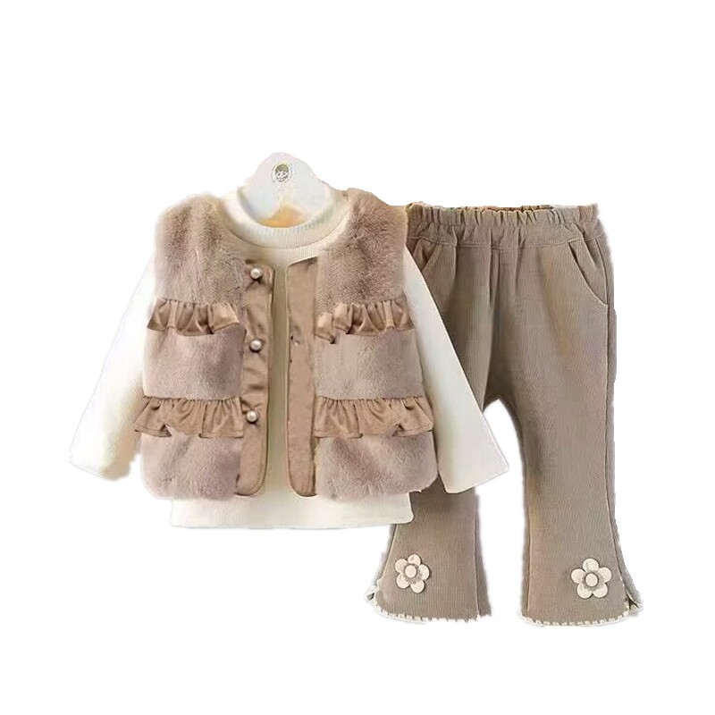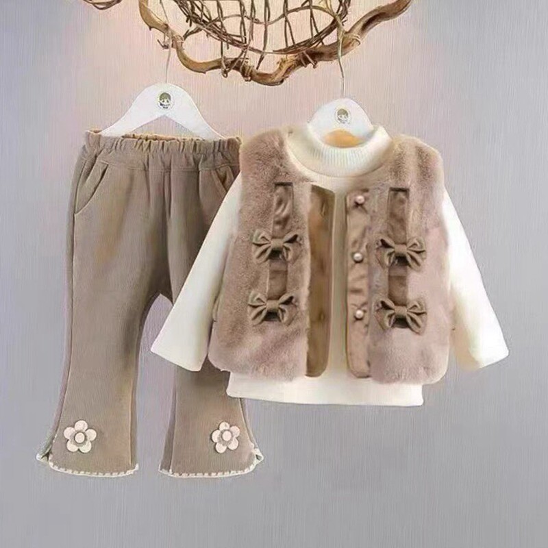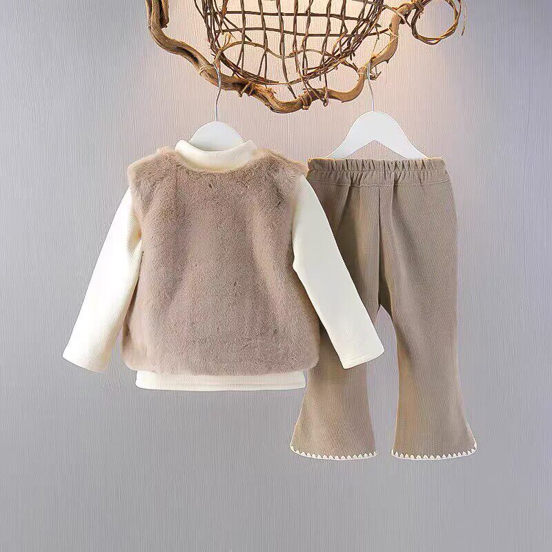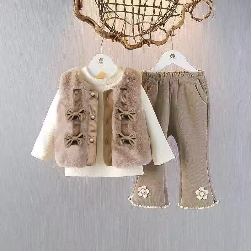 洋气女童加绒套装冬装时髦儿童装韩版公主外出服宝宝马甲三件套潮