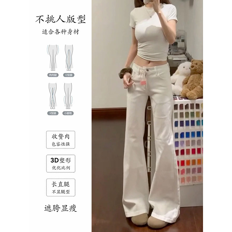 白色美式低腰微喇牛仔裤女2026春夏新款宽松显瘦不贴腿直筒喇叭裤