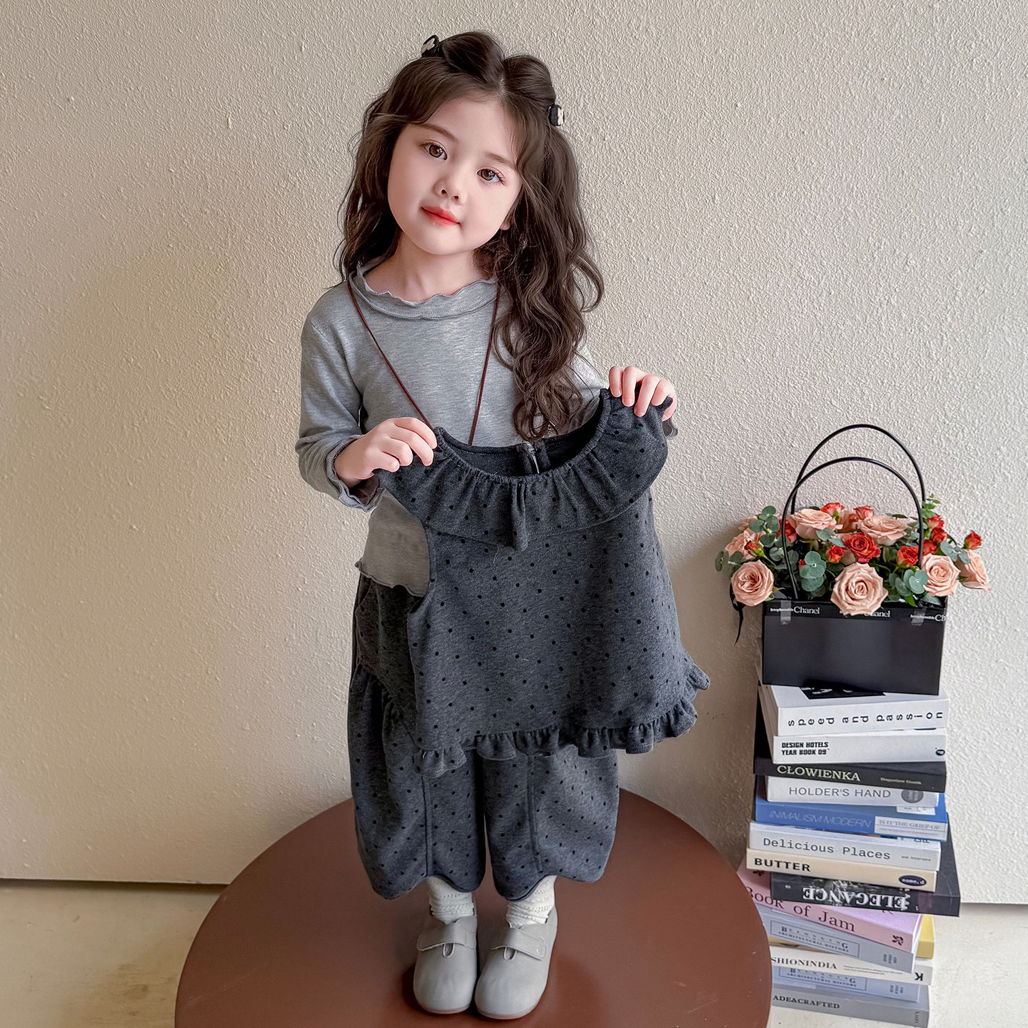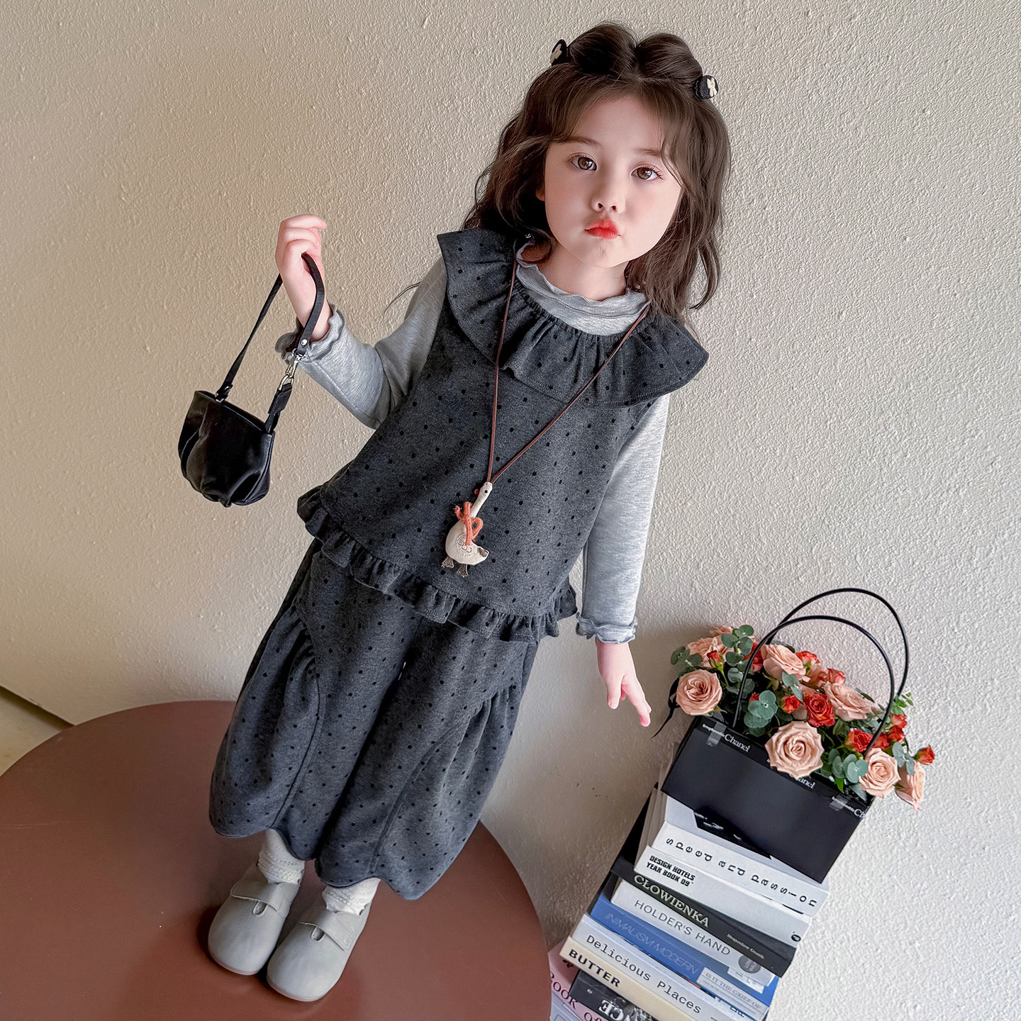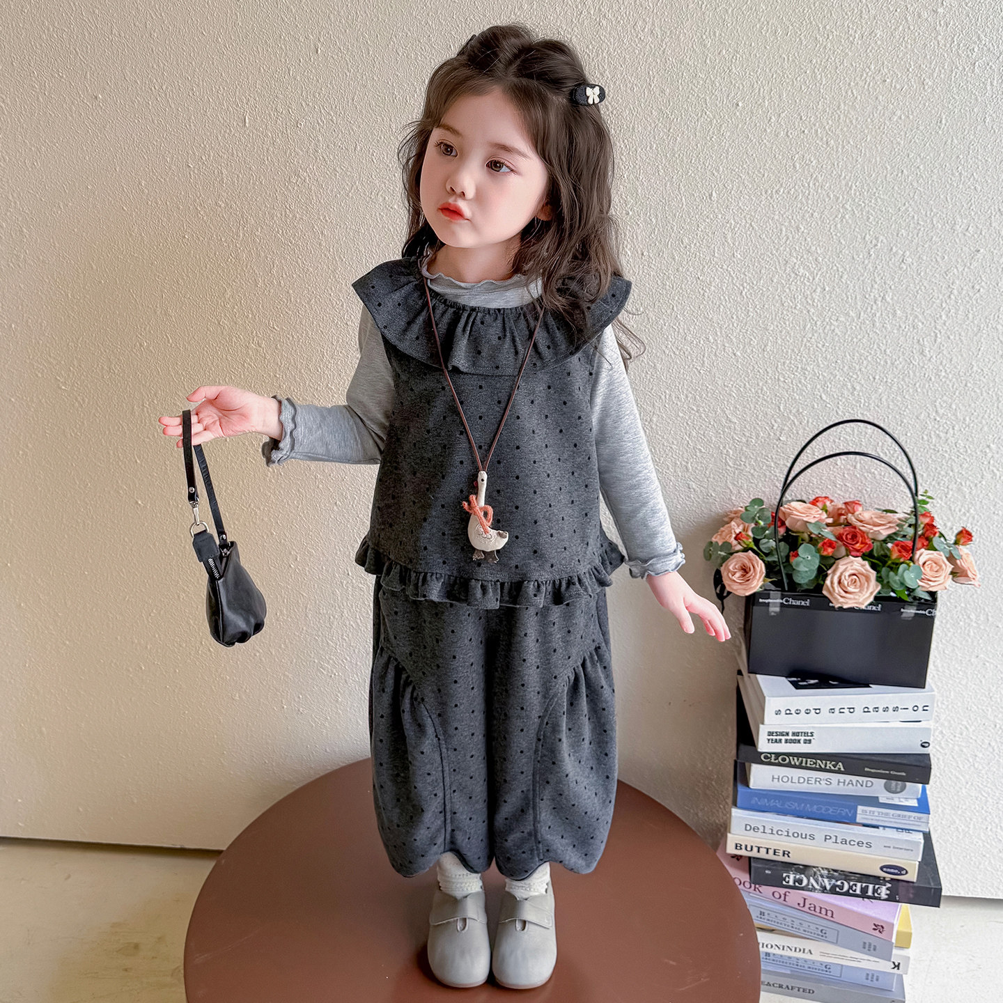 311线报网描述:小女孩洋气炸街套装,春秋时尚三件套穿搭