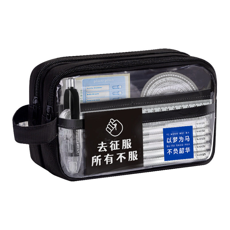 透明笔袋男生款大容量考试专用学生文具盒网红铅笔盒高颜值文具袋黑色耐脏实用型2025年新款初中生套装男孩