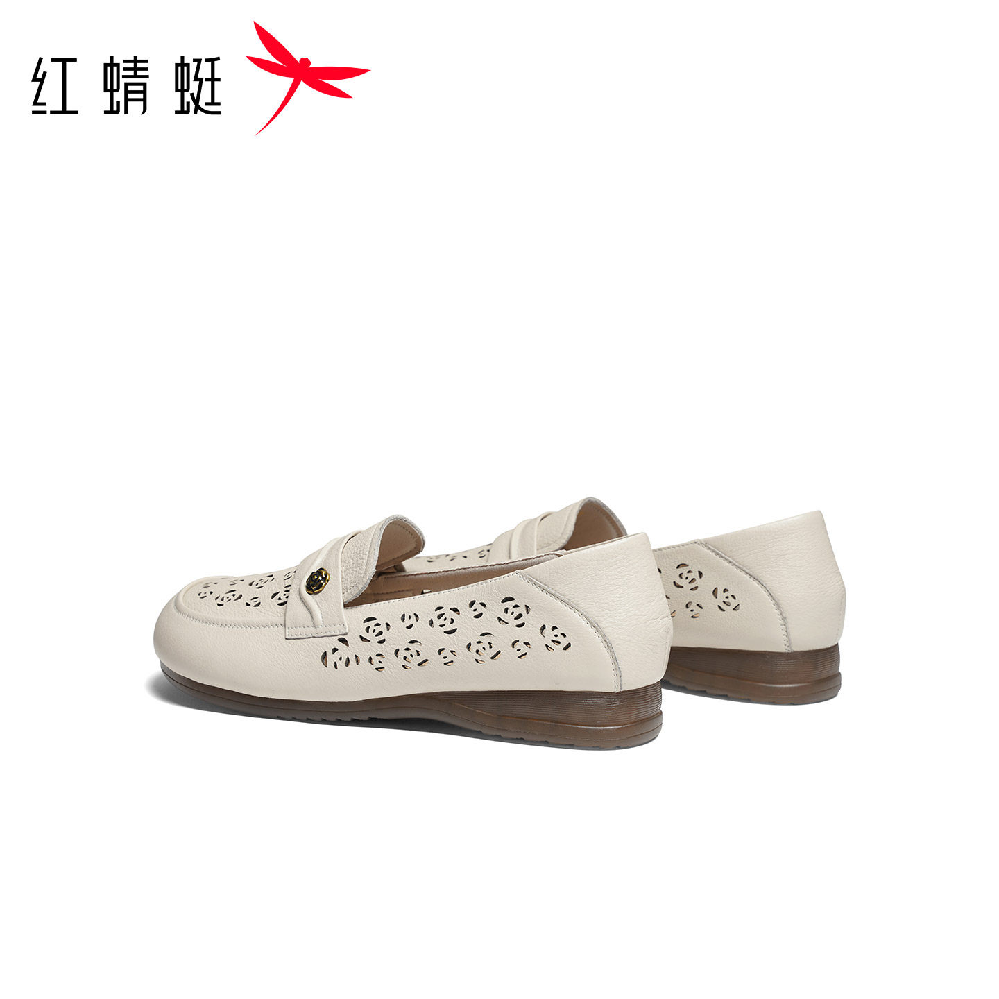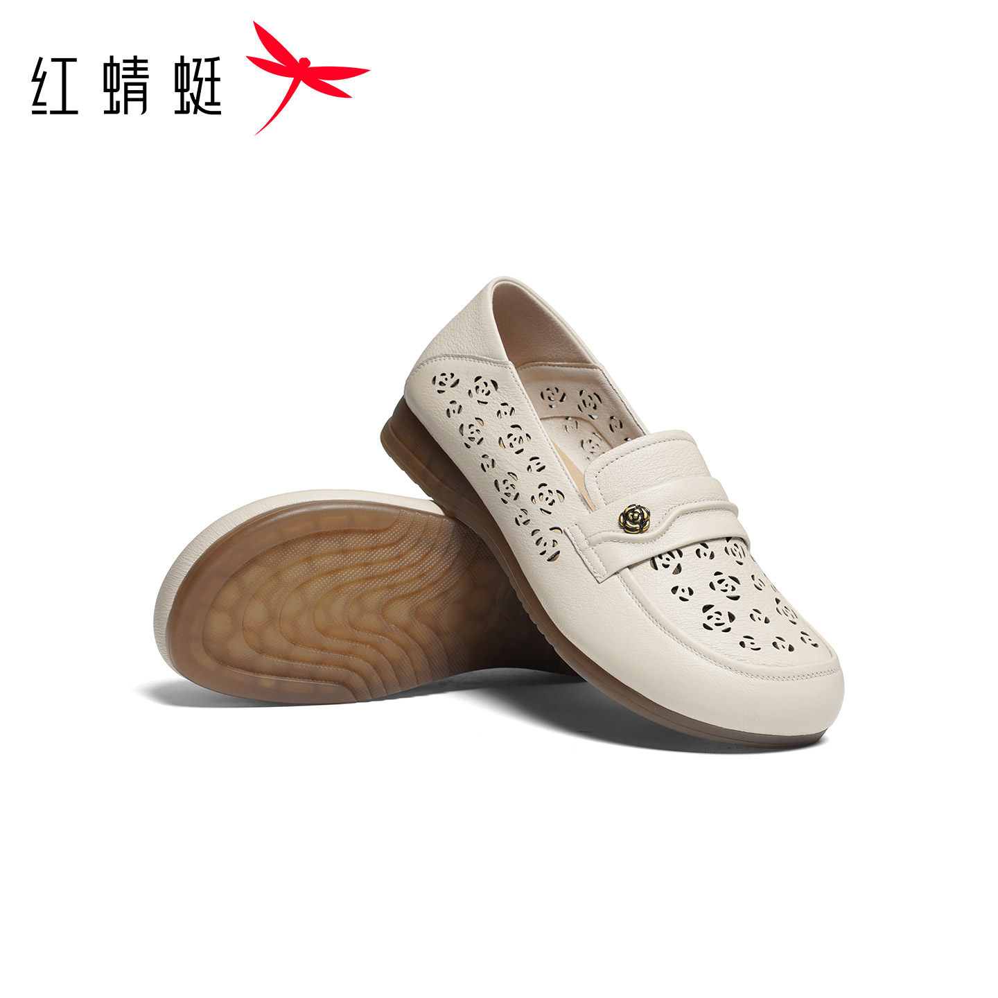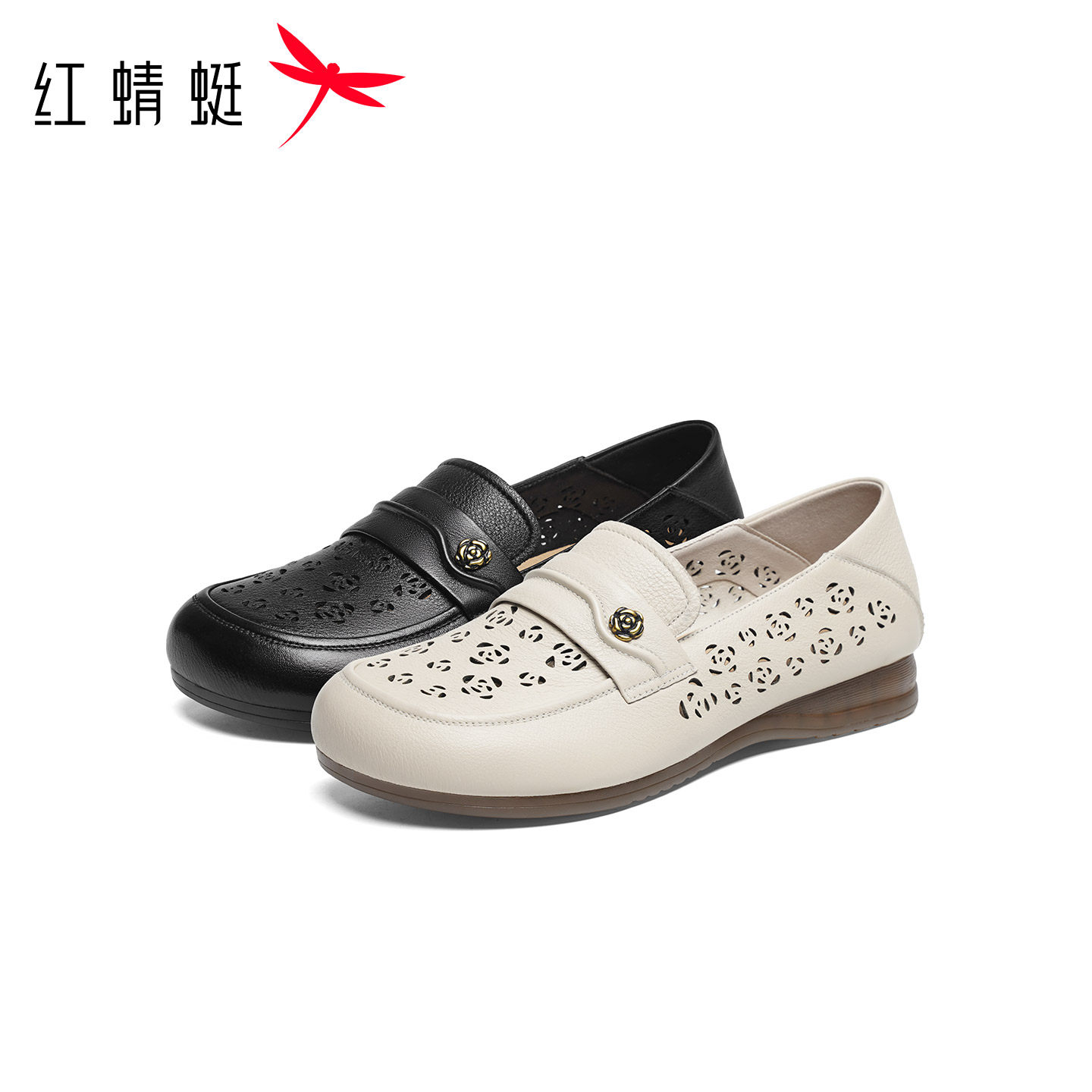 红蜻蜓妈妈单鞋2026夏季新款女鞋真皮软底中老年鞋子平底镂空皮鞋