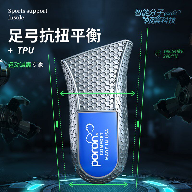 poron鞋垫运动减震碳板男款足弓支撑专业羽毛球篮球跑步女踩屎感