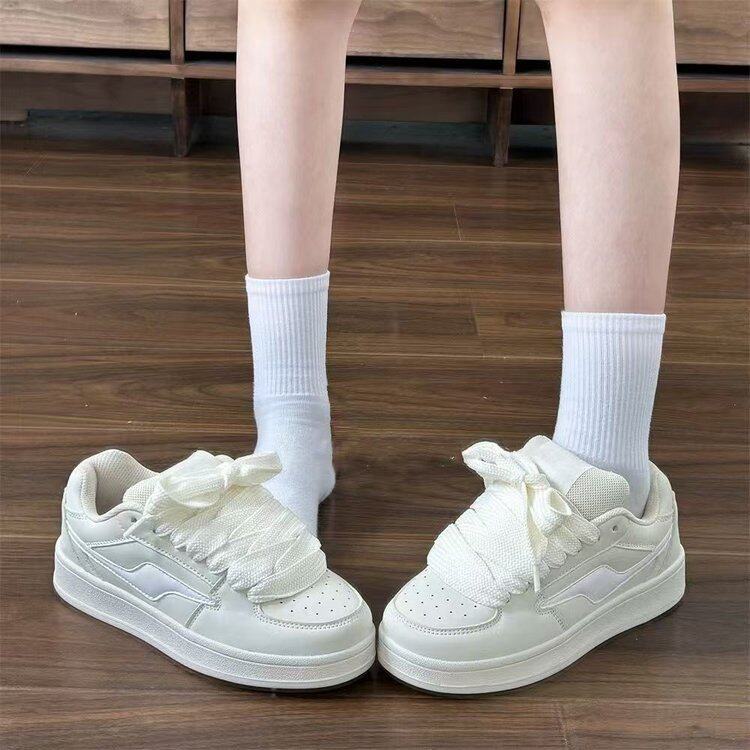 韩版小众浅粉色滑板鞋女ins潮2025春季新款学生百搭休闲面包鞋子
