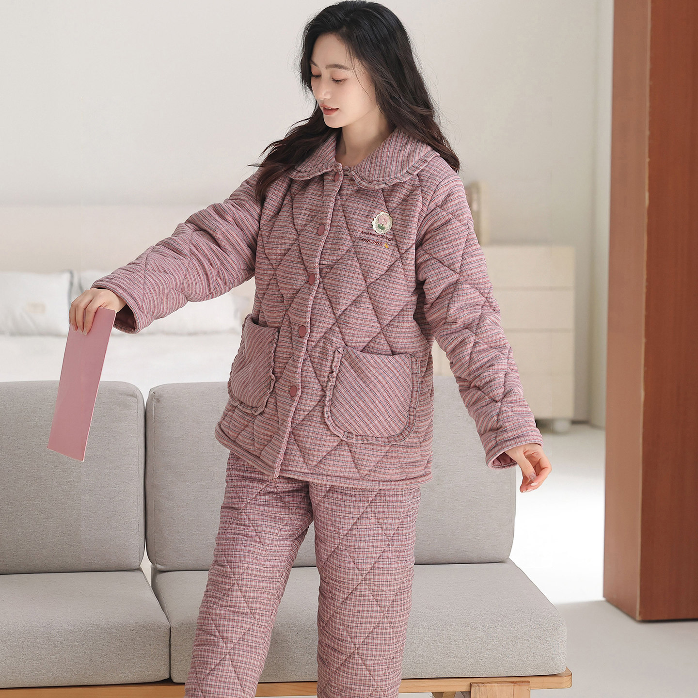 睡衣女冬天2025新款三层加厚加绒梭织纯棉夹棉秋冬款可外穿家居服