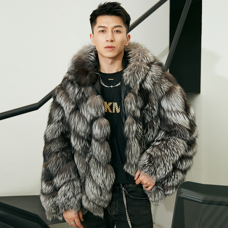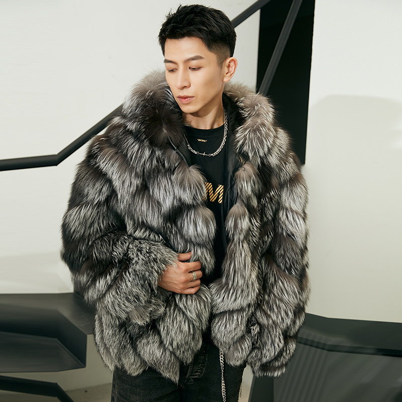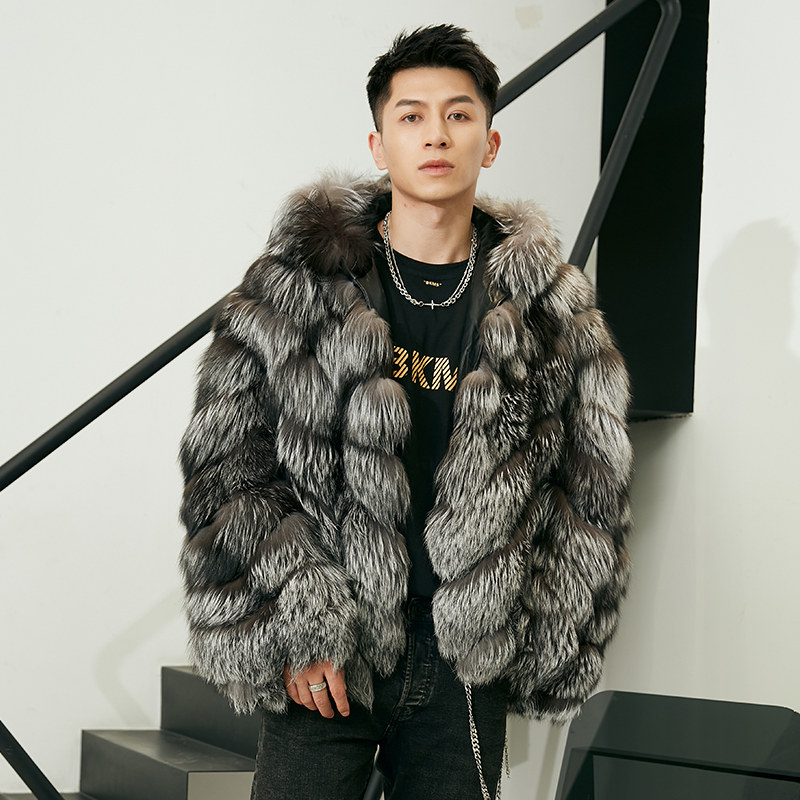由派头狐狸毛皮草男外套大码休闲连帽皮毛一体真皮衣短款大衣冬季