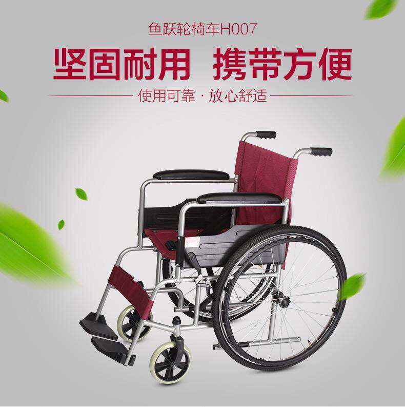 鱼跃轮椅H007便携轻便免充气家用老人残疾人代步车可折叠轮椅