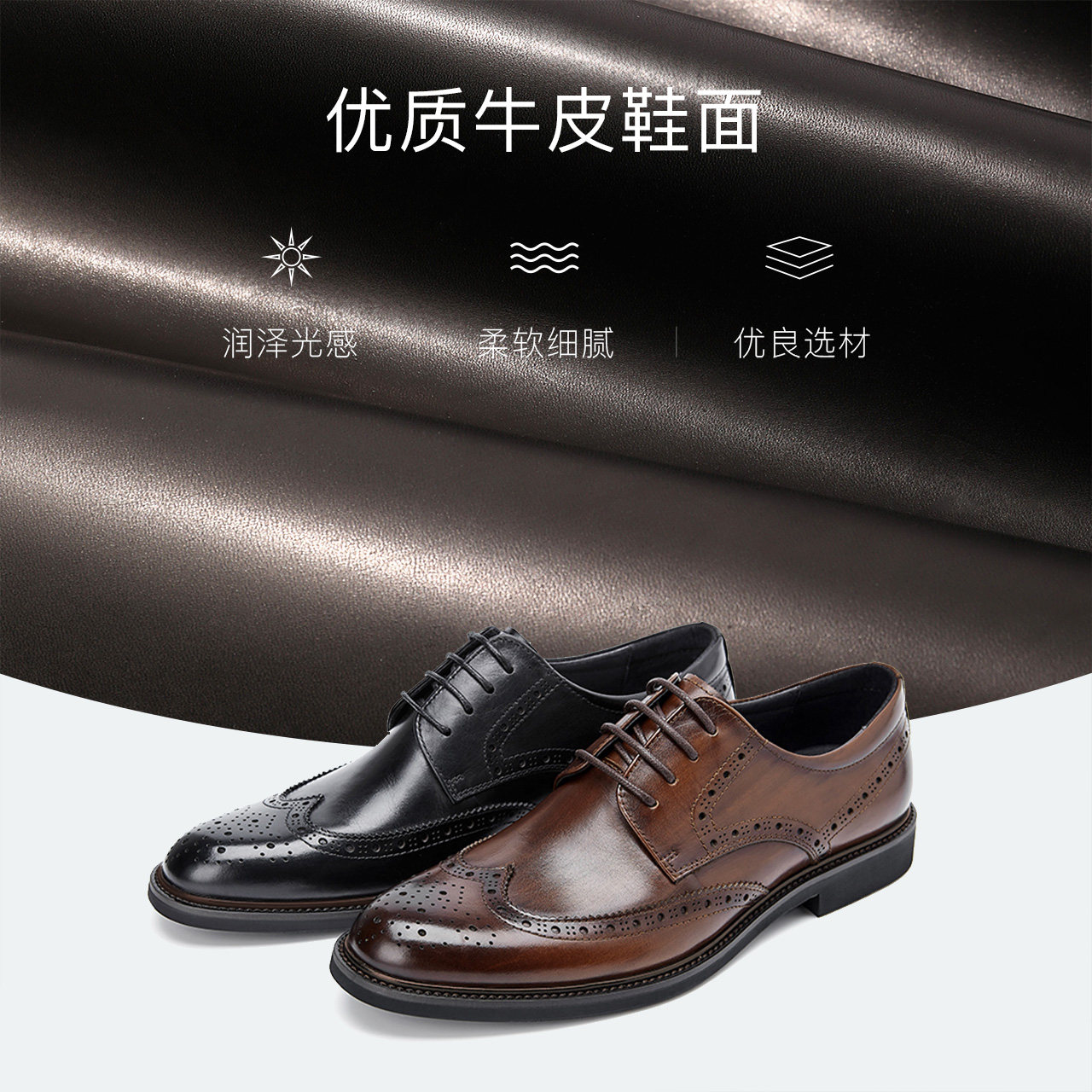 311线报网描述:皮质较软光泽感好四孔系带商务正装风