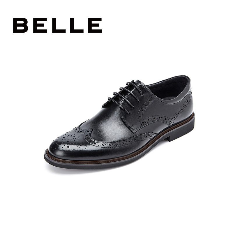 百丽男鞋夏季透气皮鞋男款布洛克真皮内增高结婚鞋子大码89183AM9