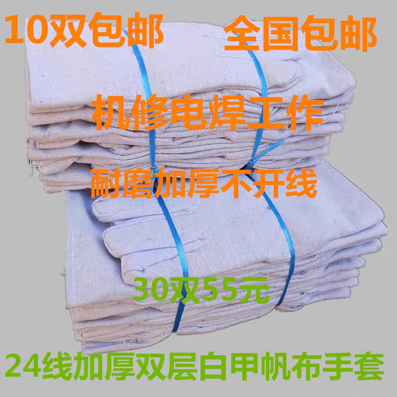 24线全衬双层帆布机械工作手套耐磨加厚电焊工厂家批劳保防护用品