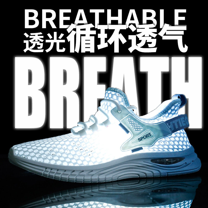 2024网鞋男透气夏季新款轻便休闲运动镂空老爹鞋男款夏天网面网眼