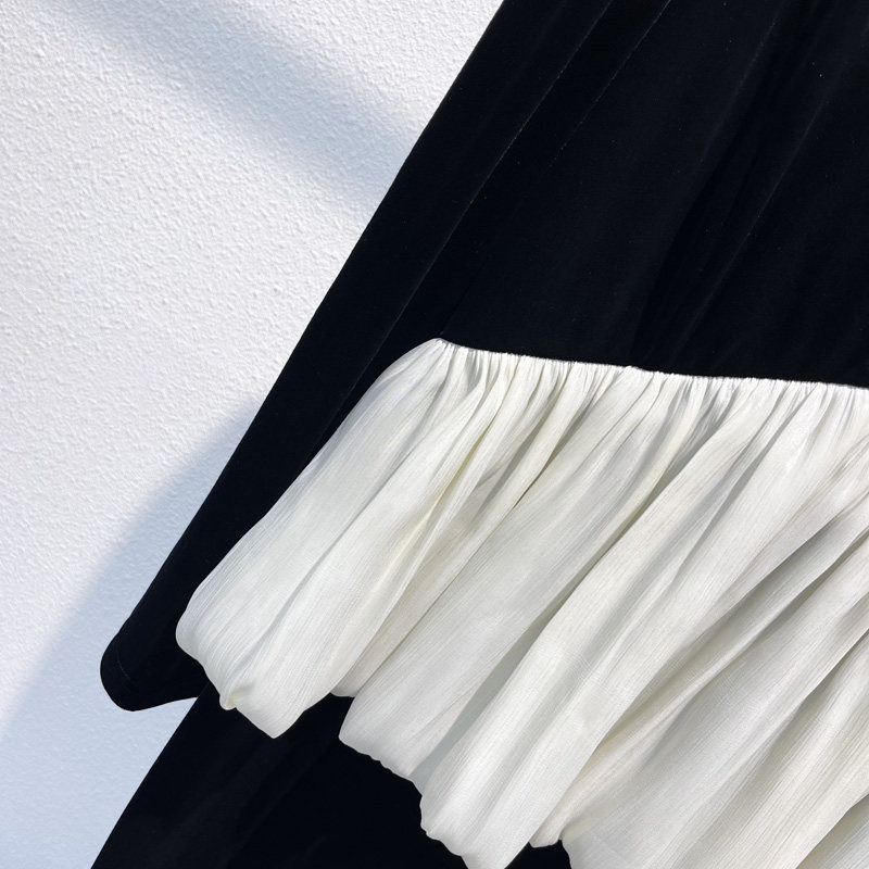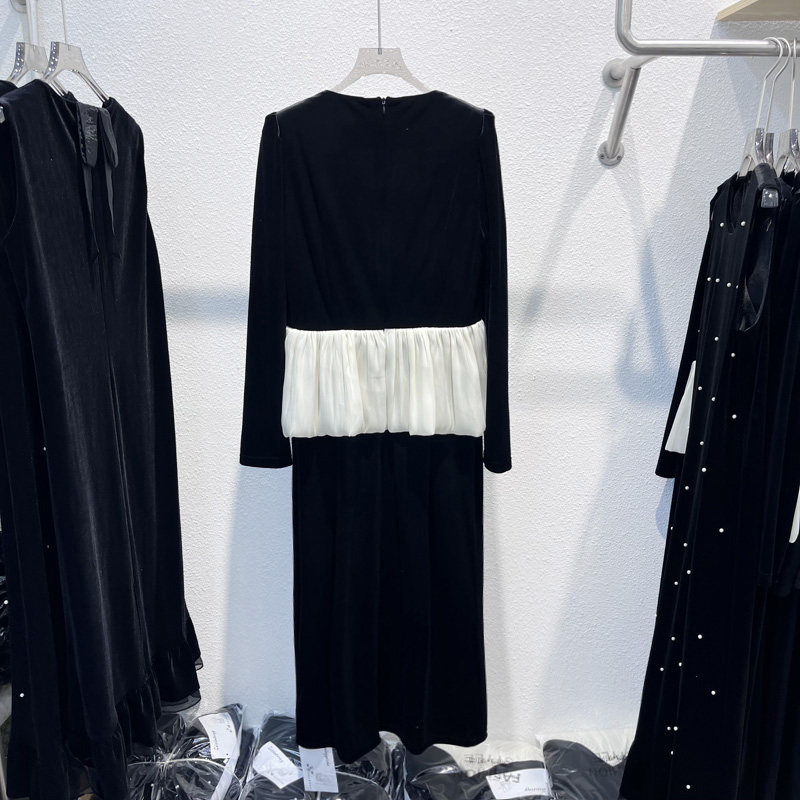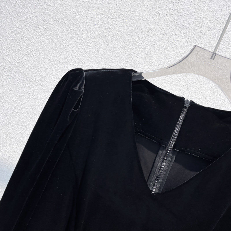 法式丝绒连衣裙女2026春秋新款V领长袖裙子潮流内搭黑色中长裙