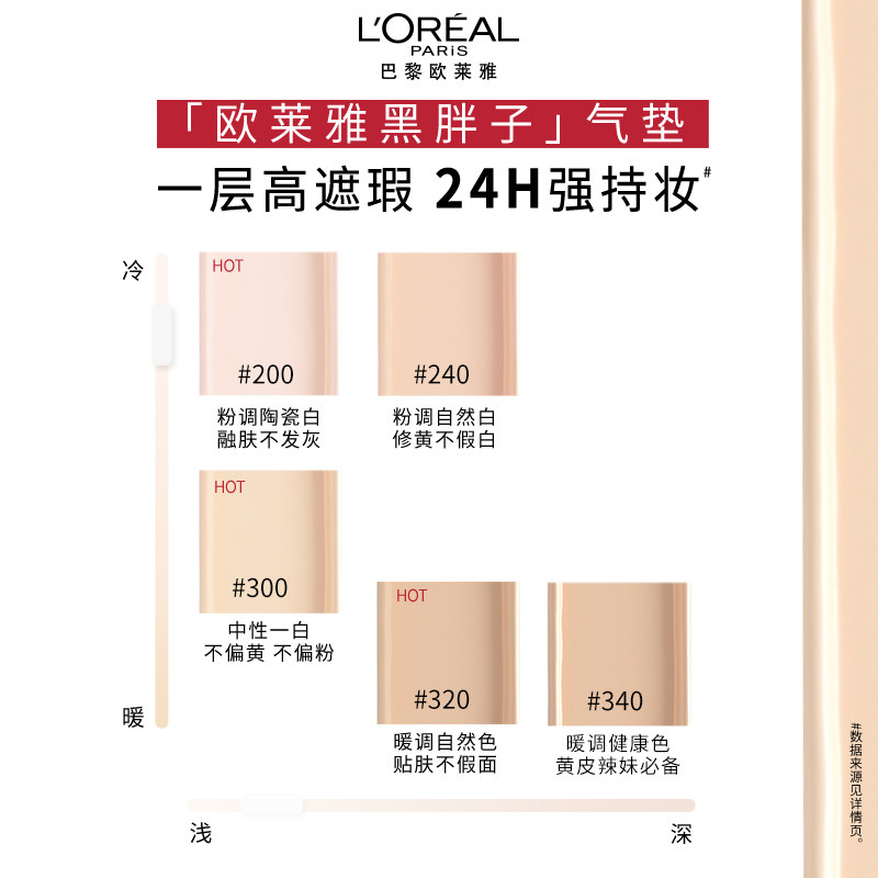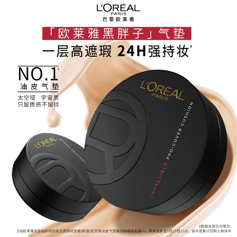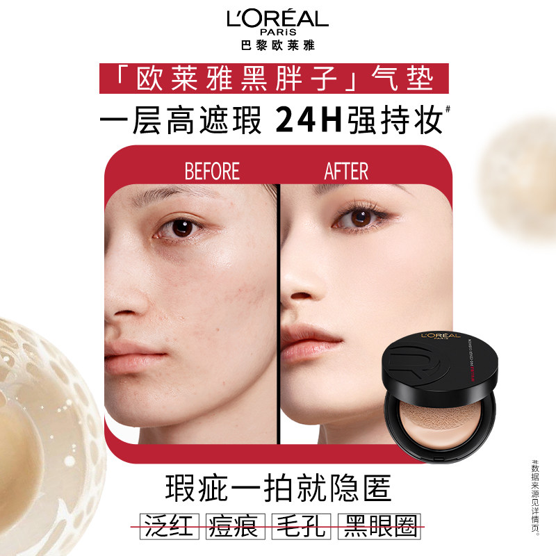 【百亿补贴】欧莱雅黑胖子气垫持妆遮瑕持久不脱妆控油