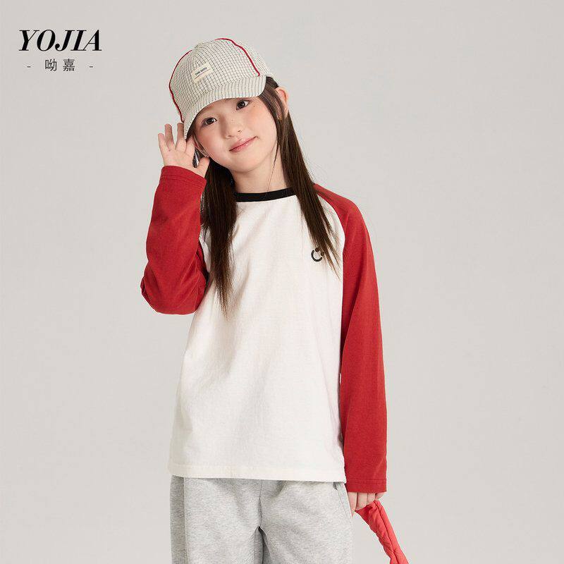 YOJIA女童长袖T恤春款2026新款洋气纯棉小女孩上衣儿童打底衫春装